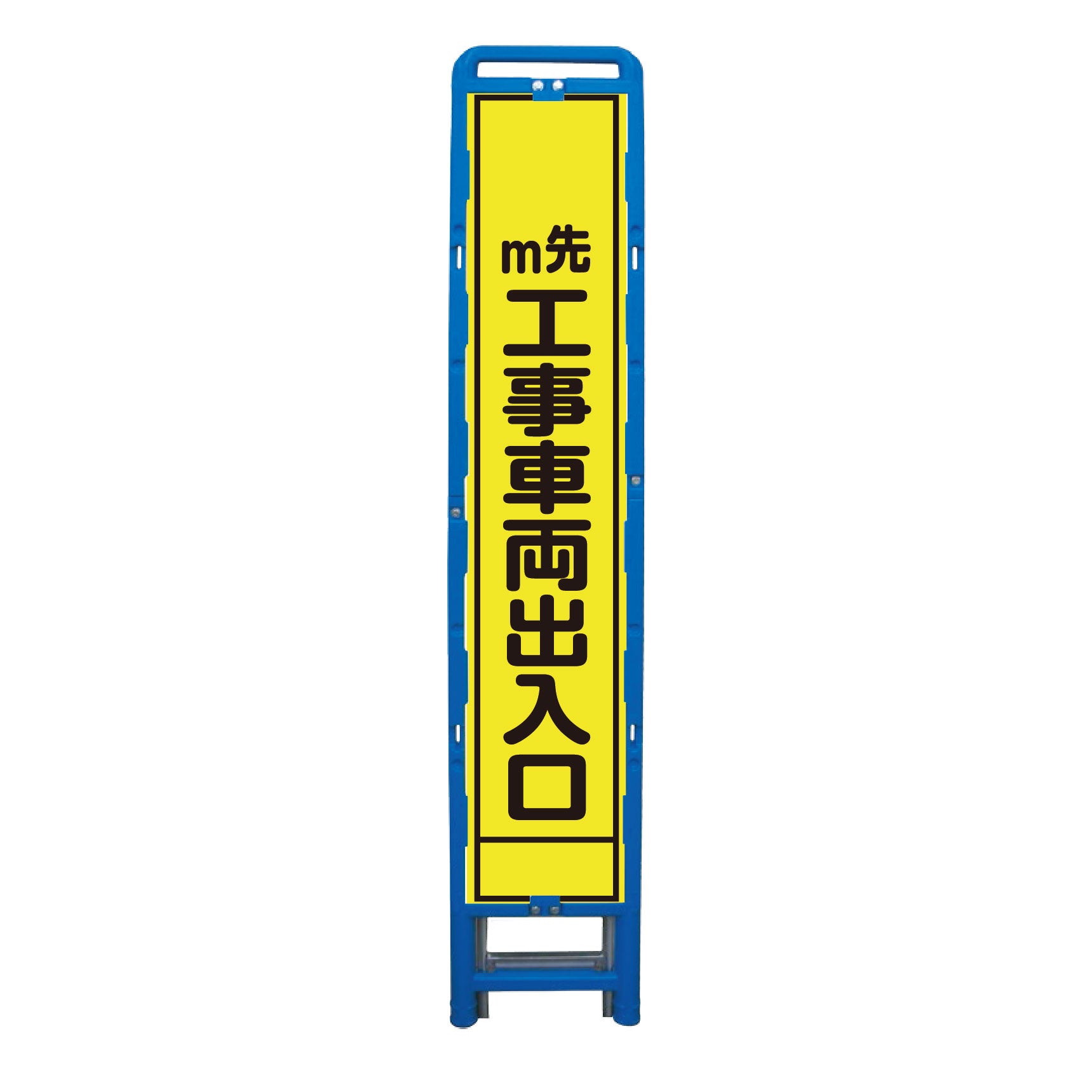 板面サイズ(mm):幅275x高さ1400・縦(mm):1725・横(mm):335・取付方法:自立式・板面:蛍光プリズムイエロー反射・枠:ブロー製枠付き・表示内容:工事車両出入口 |