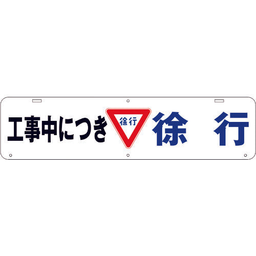 吊り下げ標識 工事中につき片側→通行 W900×220 |