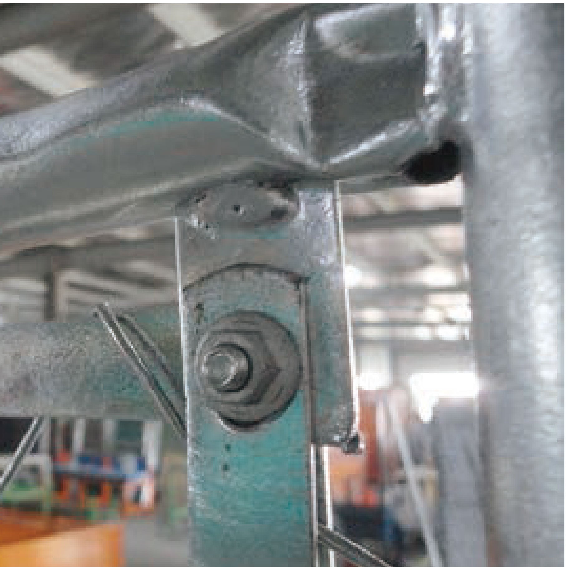 ●ネット部と支柱がプレートの挟み込みによるボルト締めになっています。