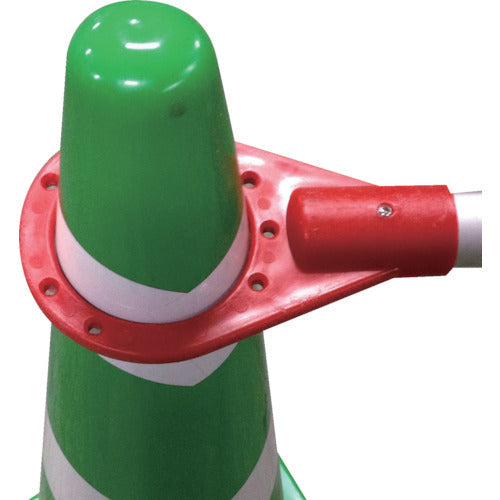 コーンバーの設置は非常に簡単ですが、しっかりとカラーコーンの穴に固定することが重要です。バーをコーンの上部にある穴に差し込み、必要に応じてバーの長さを調整します。安全を確保するためには、バーがしっかりとコーンに固定されていることを確認してください。