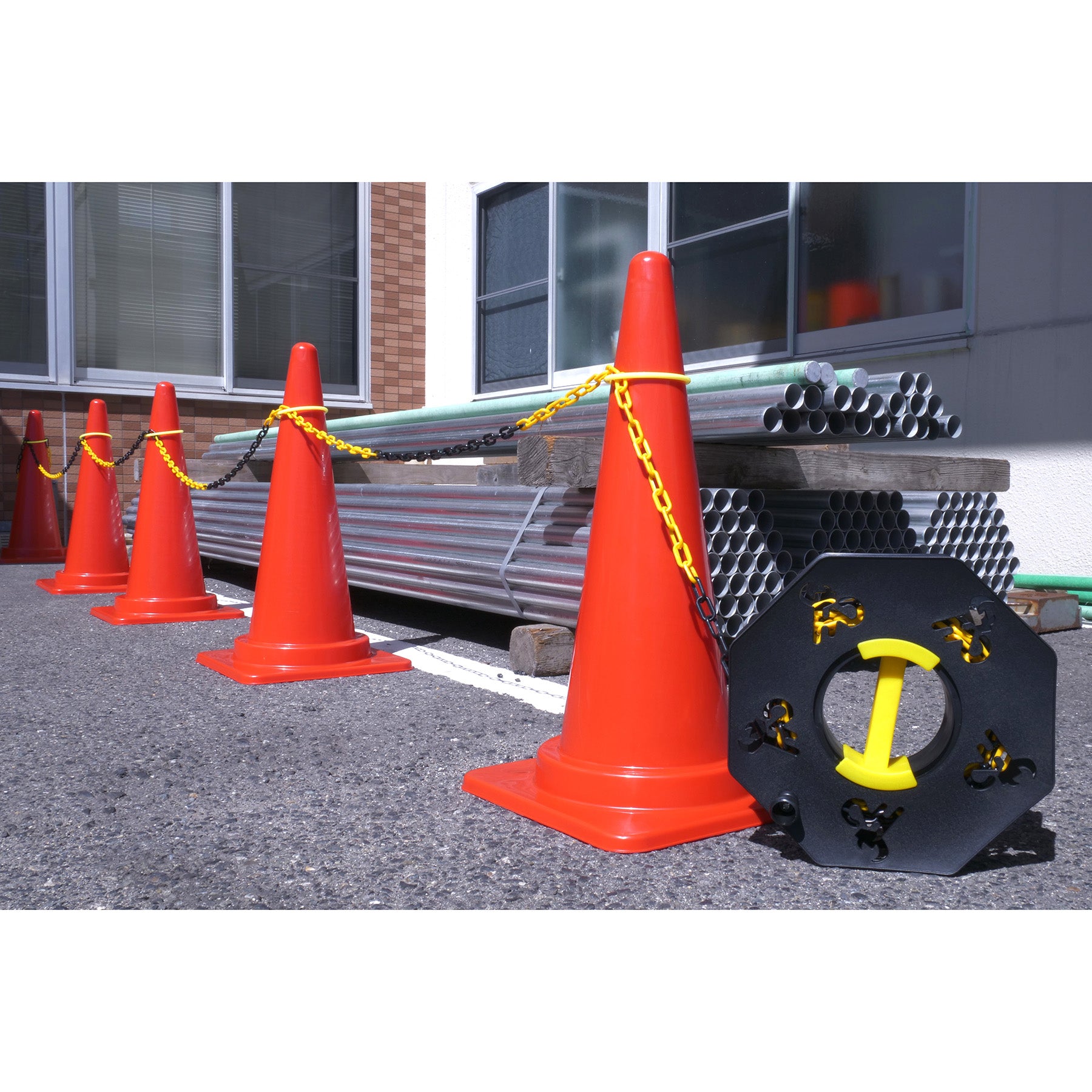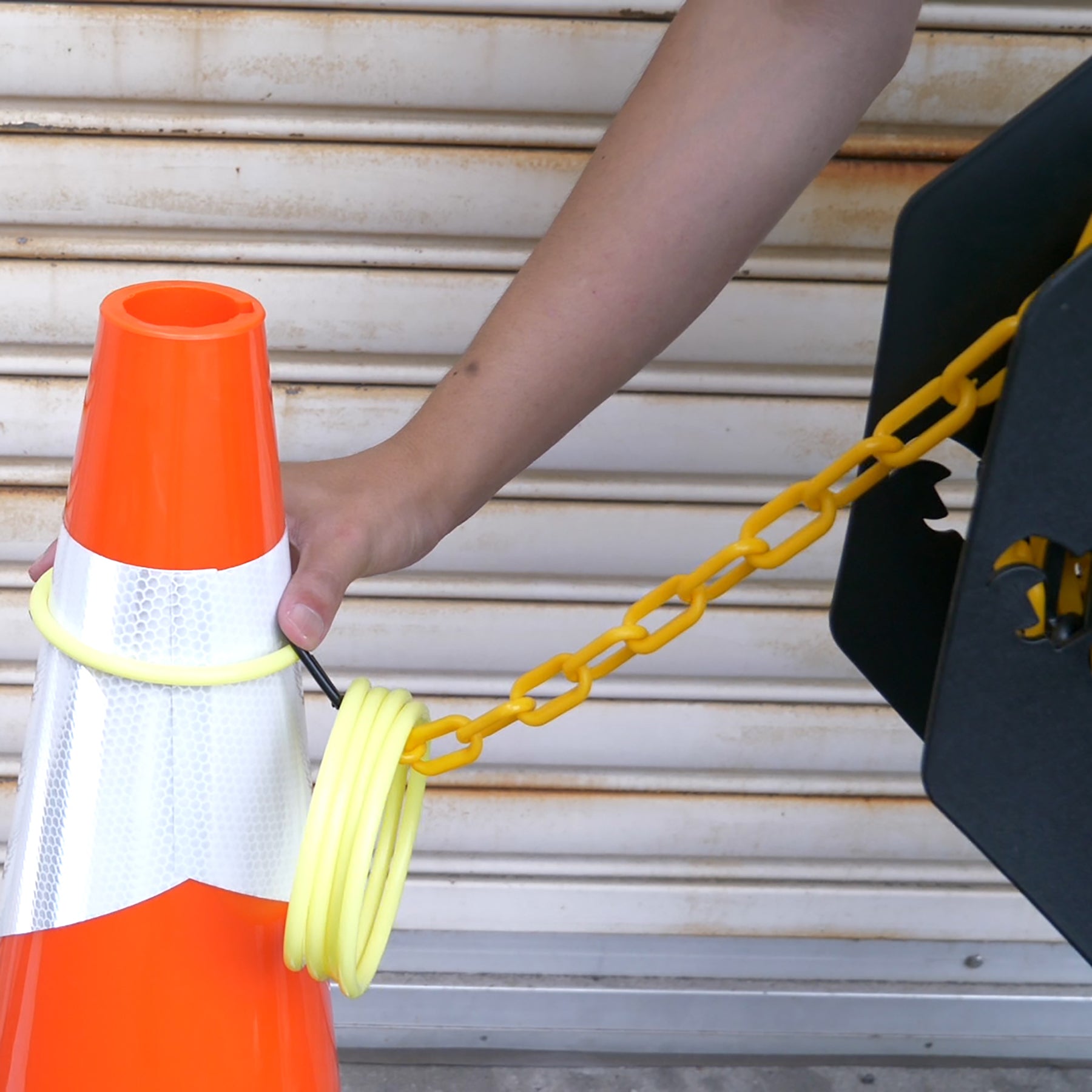 ●『チェーンリール 16m』は、主に工事現場やイベント会場などで、人の通行を規制したり、区画を分けるために使用される資材です。