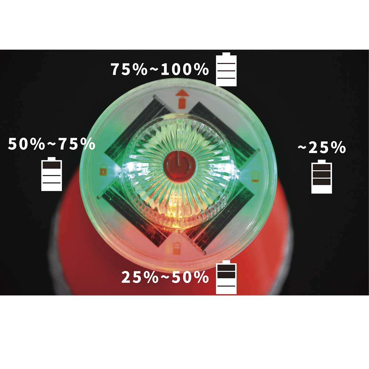 コーン上部に取付けが可能なソーラー充電タイプの工事灯です。