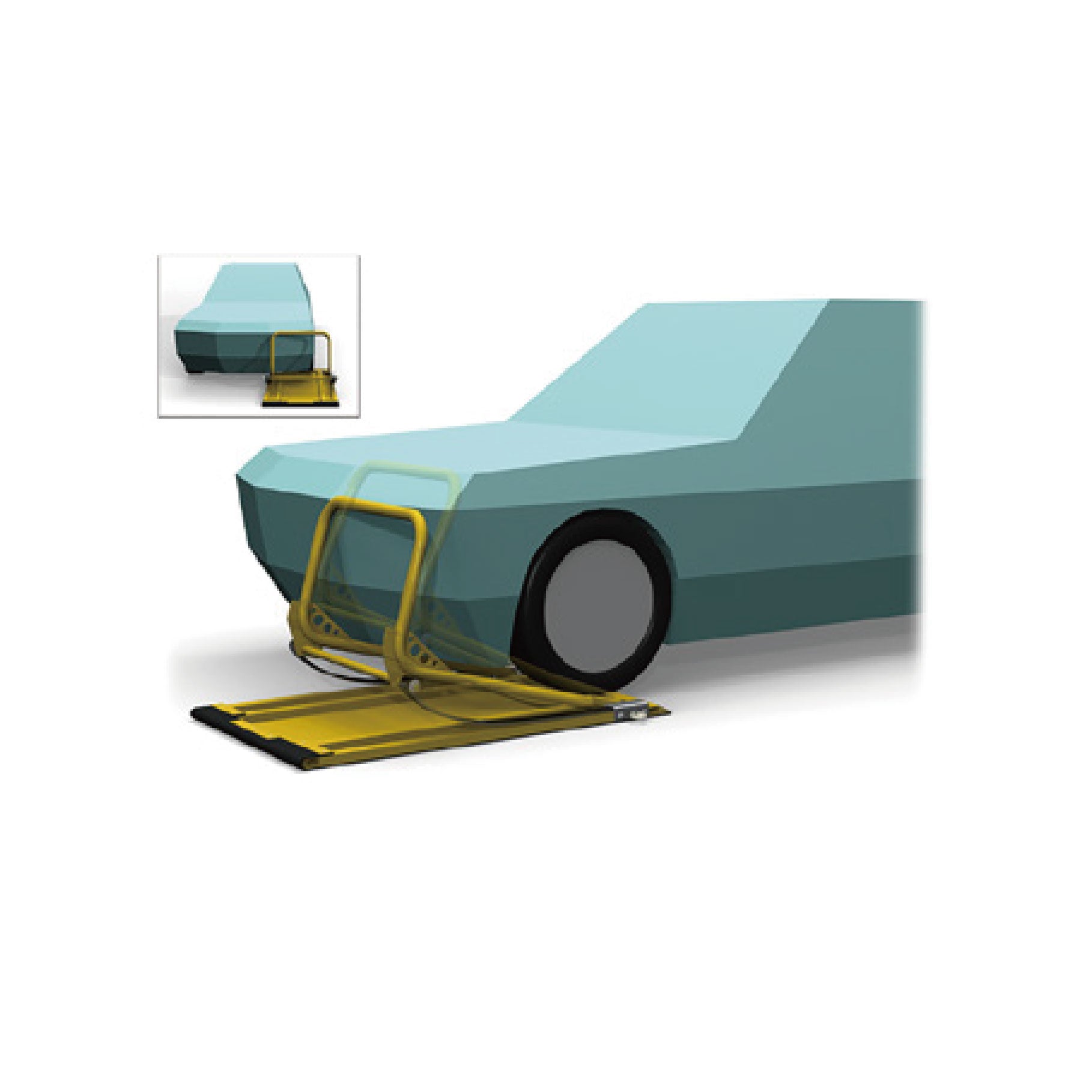 ●規制の相棒(車両停止装置)は規制区間内に誤侵入した車両が接触すると、規制の相棒は車両の下に入り込むかたちとなります。