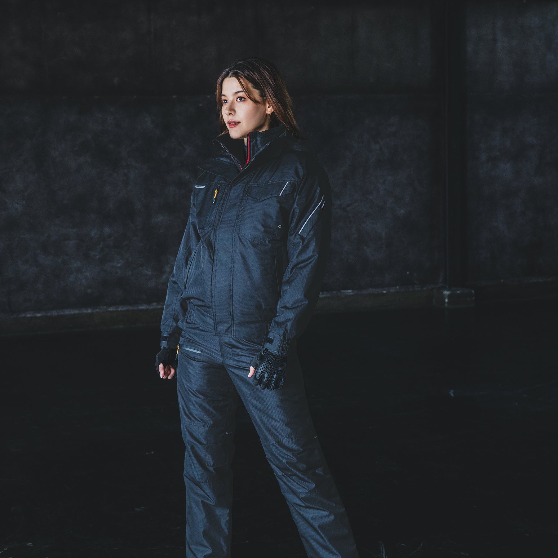 | 表地:ポリエステル100%、マイクロドットシェル、PUコーティング 裏地:全天候型保温素材(サーモトロンラジポカ)、帯電防止(メガーナ) |