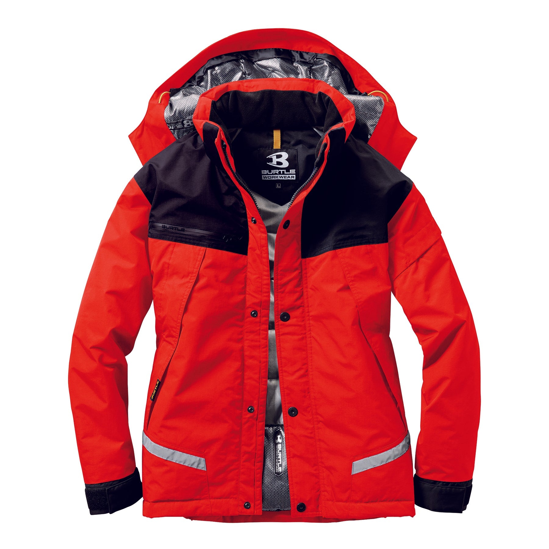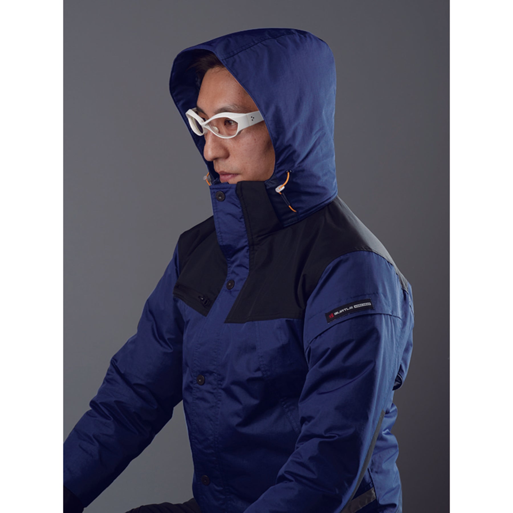 | 袖ペンさし(左・アマブタ付) カフスアジャスター 反射材(リフレクター) 大型フードスピンドル付(マジックテープ+ファスナー脱着:フード裏アルミフィルムラミネート加工) 内ポケット(左) |