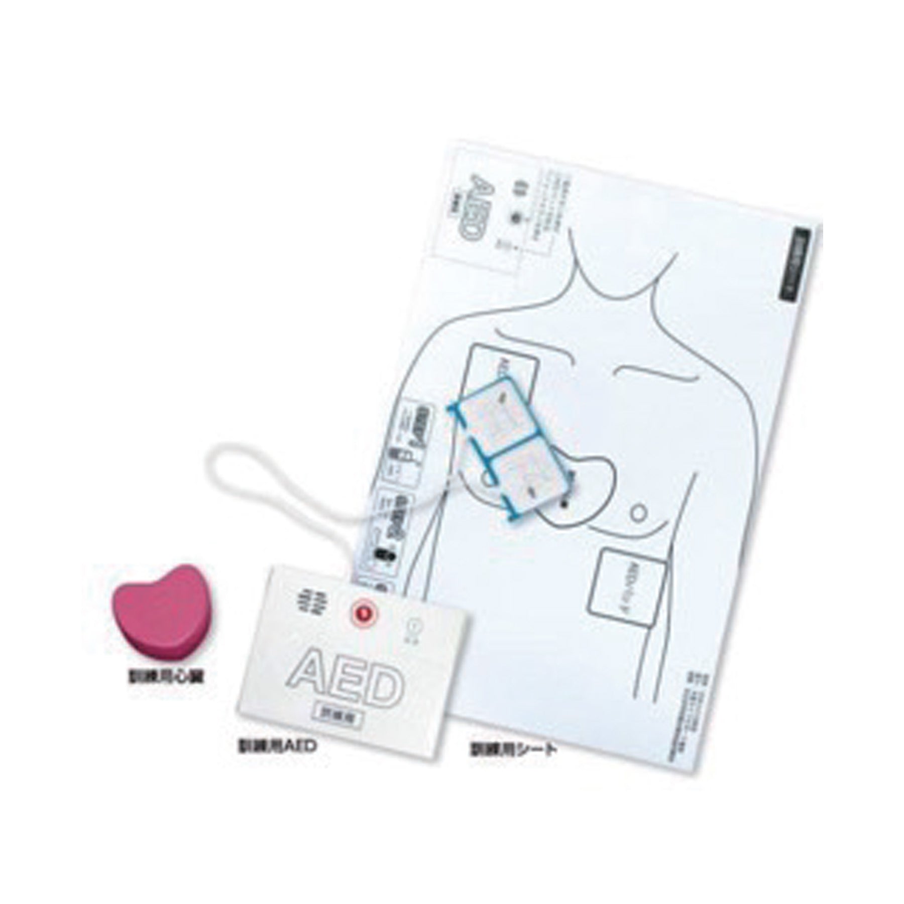 訓練用AED(パッド付き)、訓練用心臓、訓練用シート |
