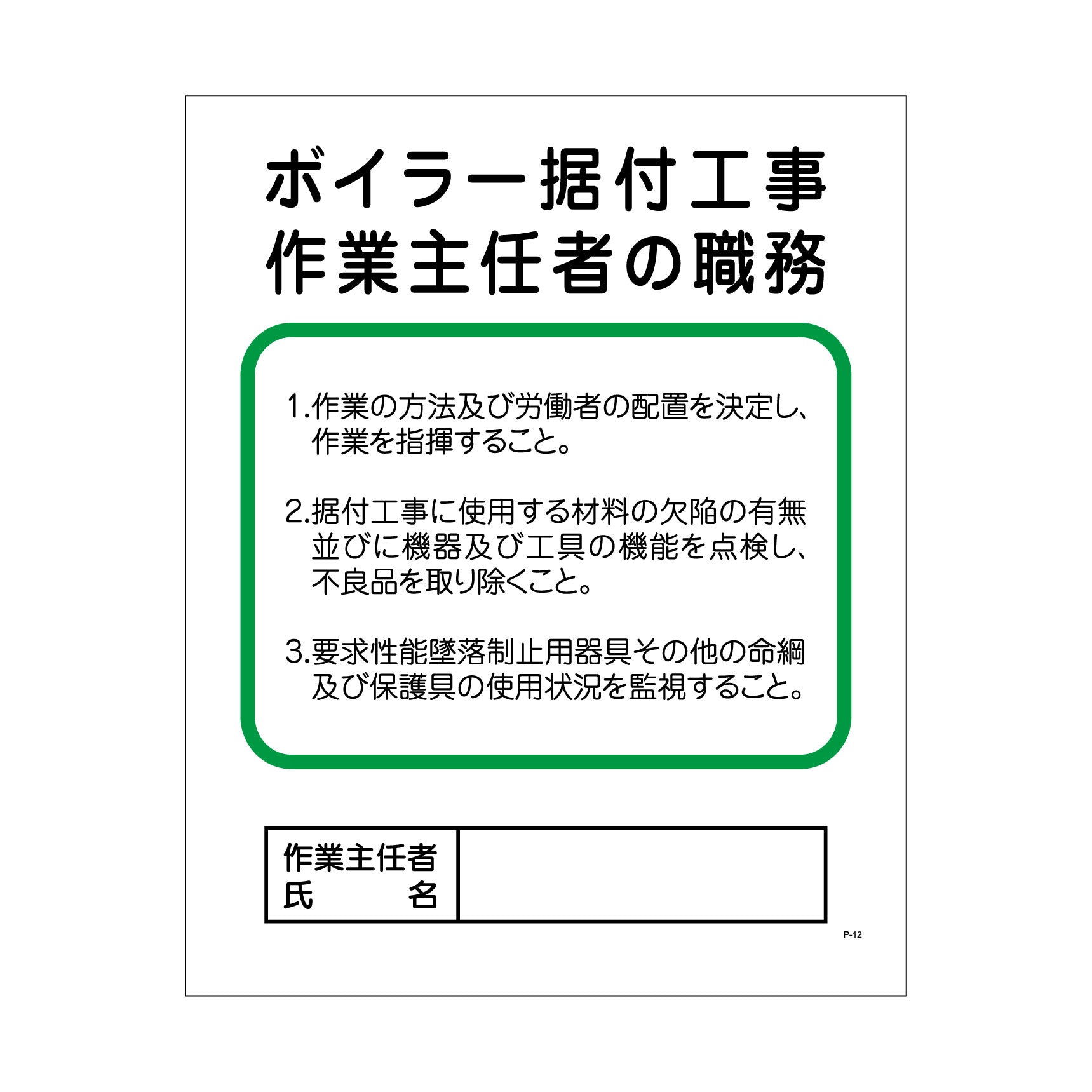 ボイラー据付工事作業主任者の職務