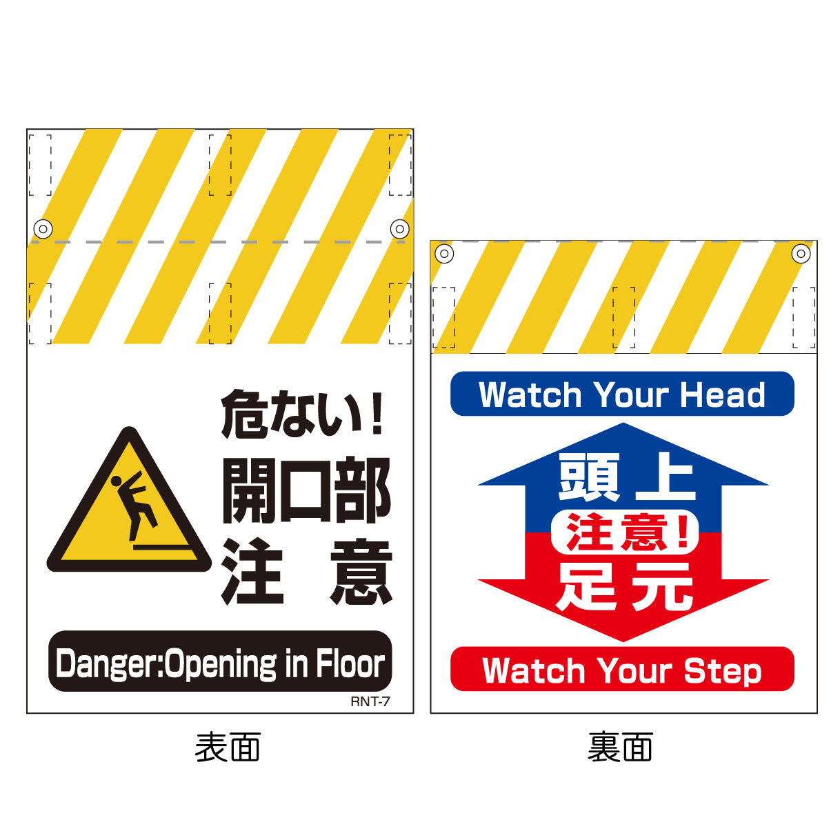 RNT両面タンカン標識 開口部注意(両面別デザイン) |
