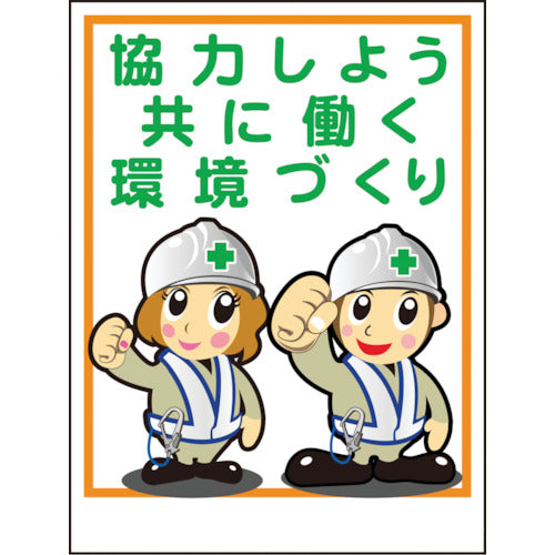 マンガ標識LA-030 協力しよう共に働く環境づくり |
