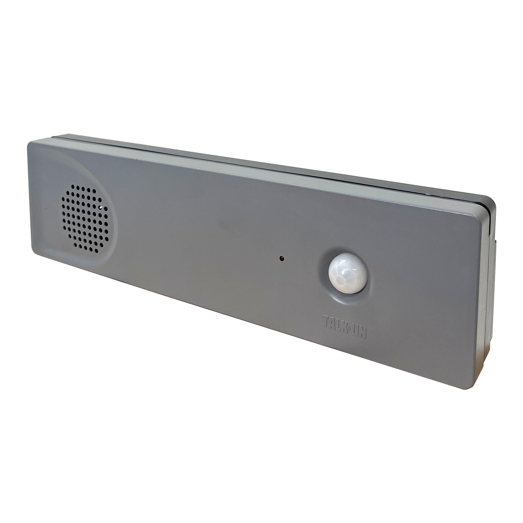 センサー式の音声案内機器、トークンが付いており、人感センサーで反応して音声案内を行います。