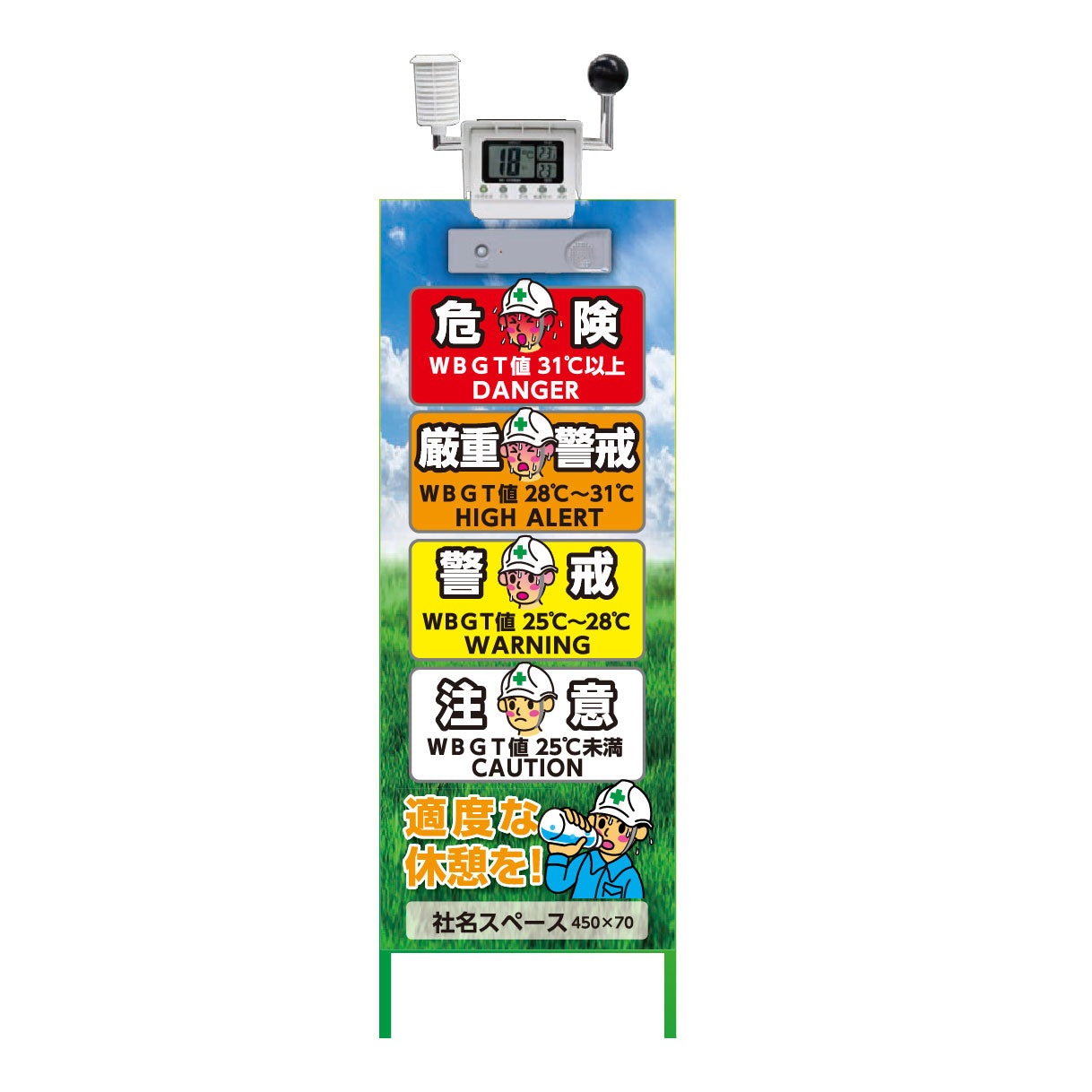 視認性の高い目立つ看板で、WBGT値による警戒レベルが簡単に判別できるWBGT看板です。