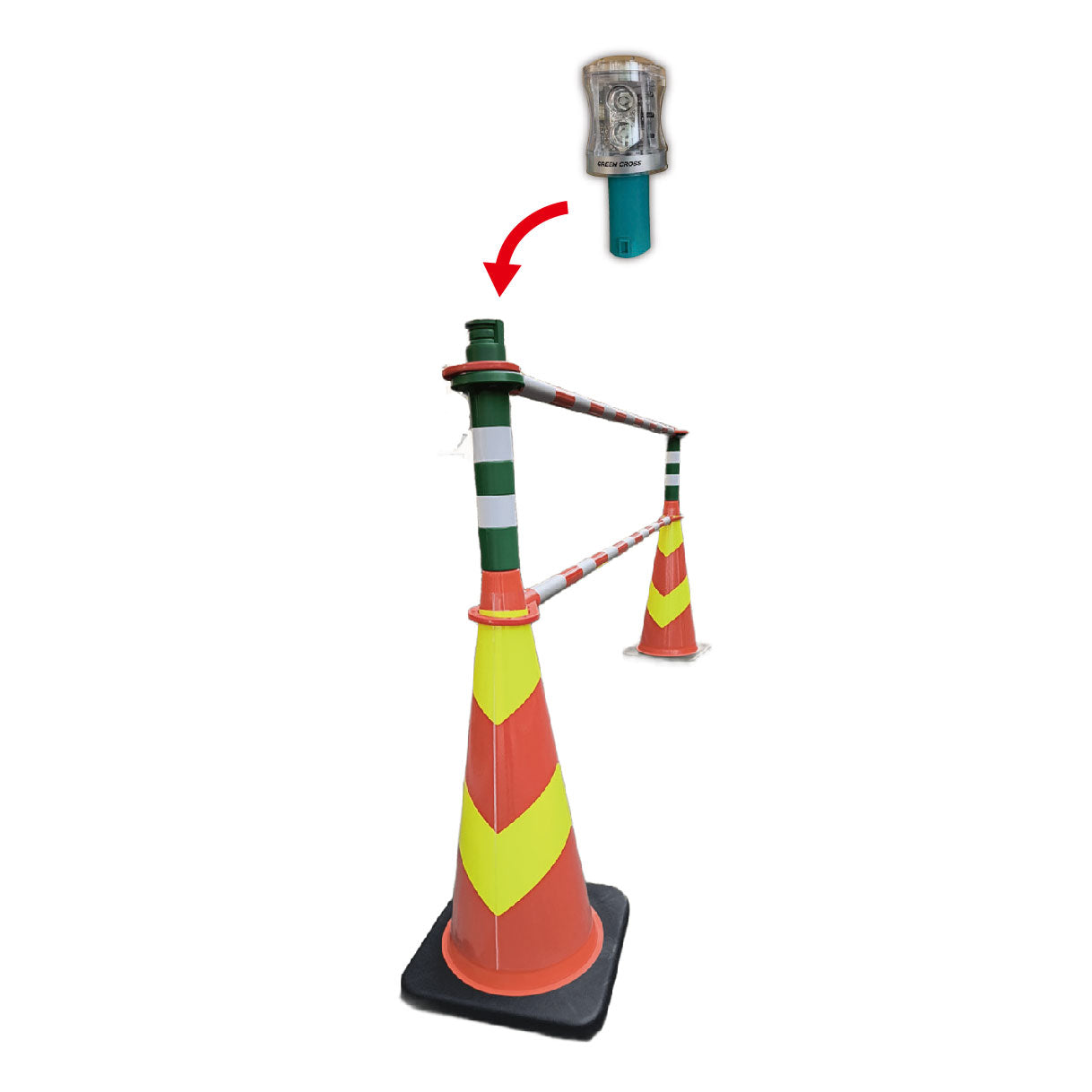 上部には工事灯の差込穴があるので、コーン用の工事灯・保安灯も同時に使用できます。