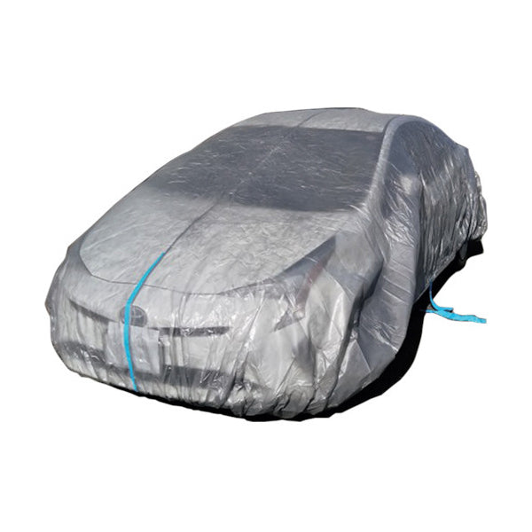 防水加工がされた不織布のオートカバーです。センターライン色付で位置決めしやすく、前後に絞り紐付きで、風でカバーが飛ばないようにおもし付の結束紐がついています。不織布製なので炎天下、ボディへくっつくのを防ぎます。静電気によるホコリの付着が少なく、ボディへの小傷も防ぎます。