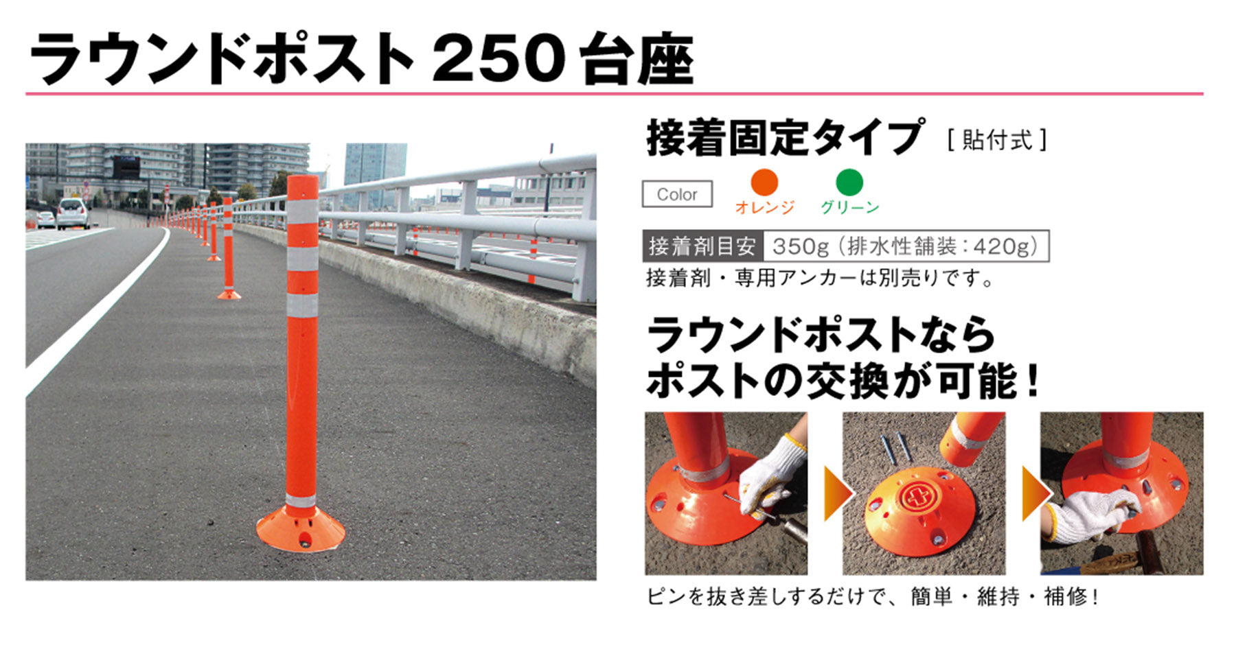 ラウンドポスト250台座接着固定 RP1000-25オレンジ |
