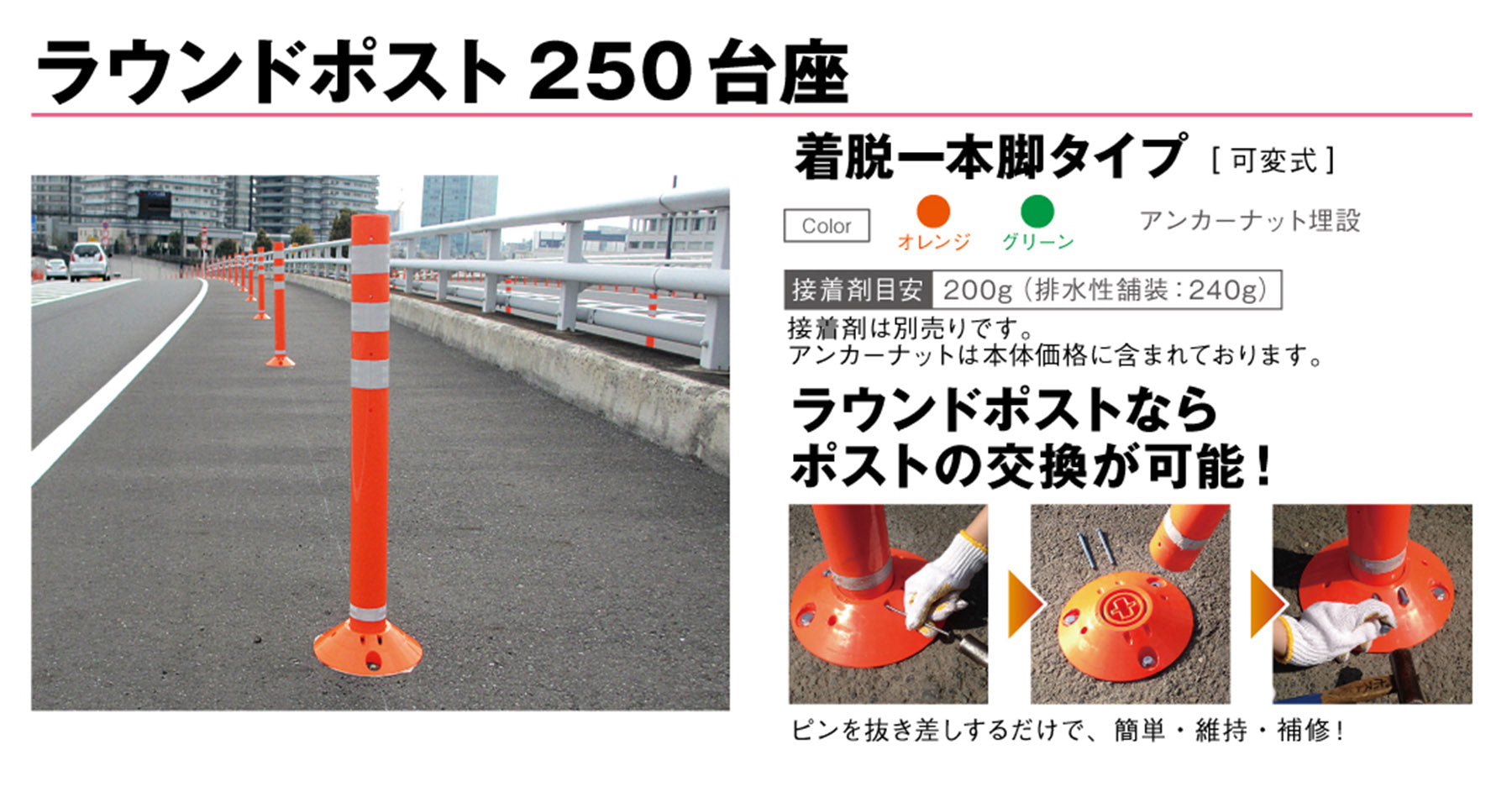 ラウンドポスト250着脱一本脚RP-U1000-25オレンジ |