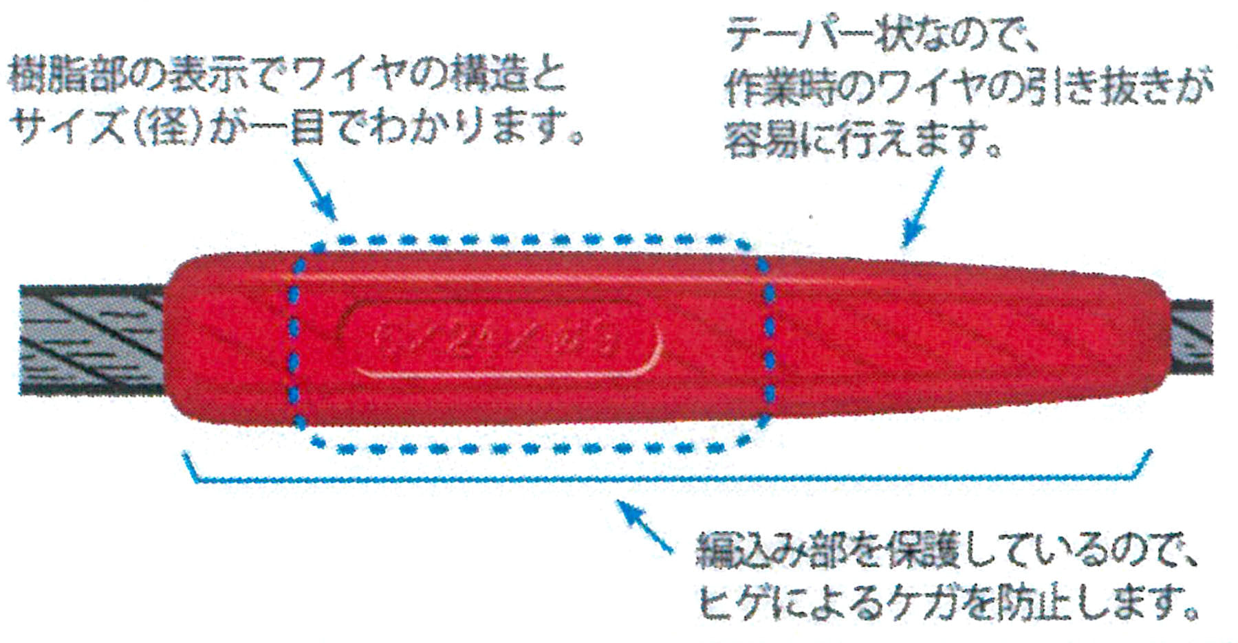 ●モールド部の表示によりワイヤの構造とサイズ(径)が一目で分かります。