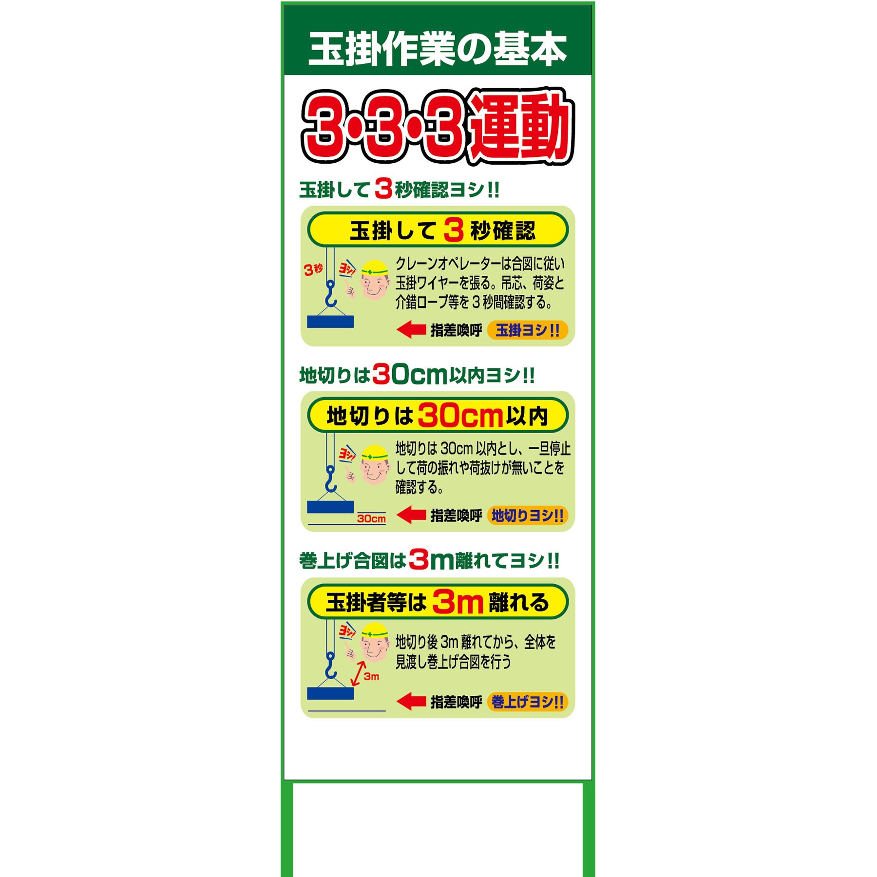 ●333運動で玉掛け作業時の安全作業を注意喚起し、重大災害を防止するための看板です。