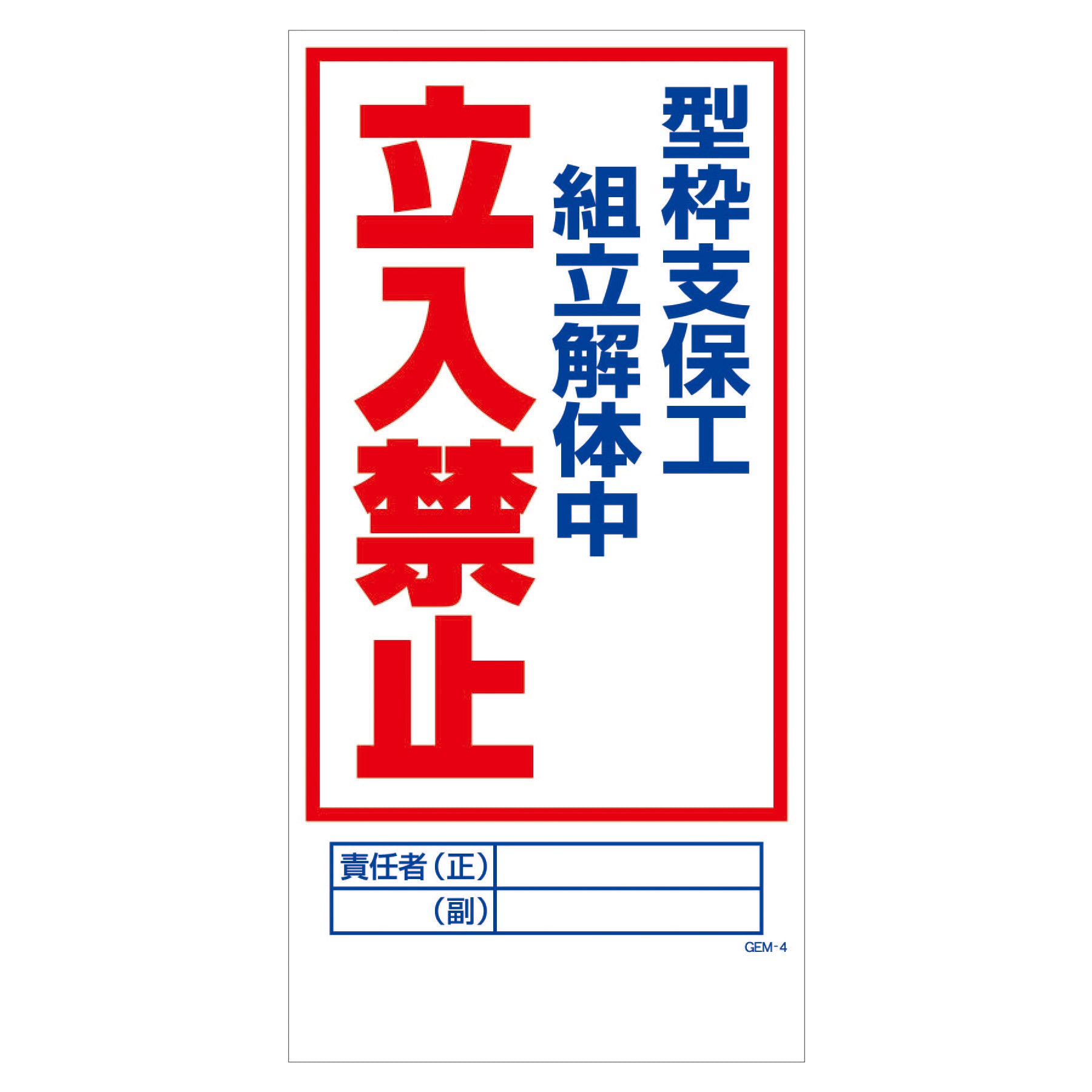 マンガ標識 マグネット GEM-M4 型枠支保工組立解体中立入禁止