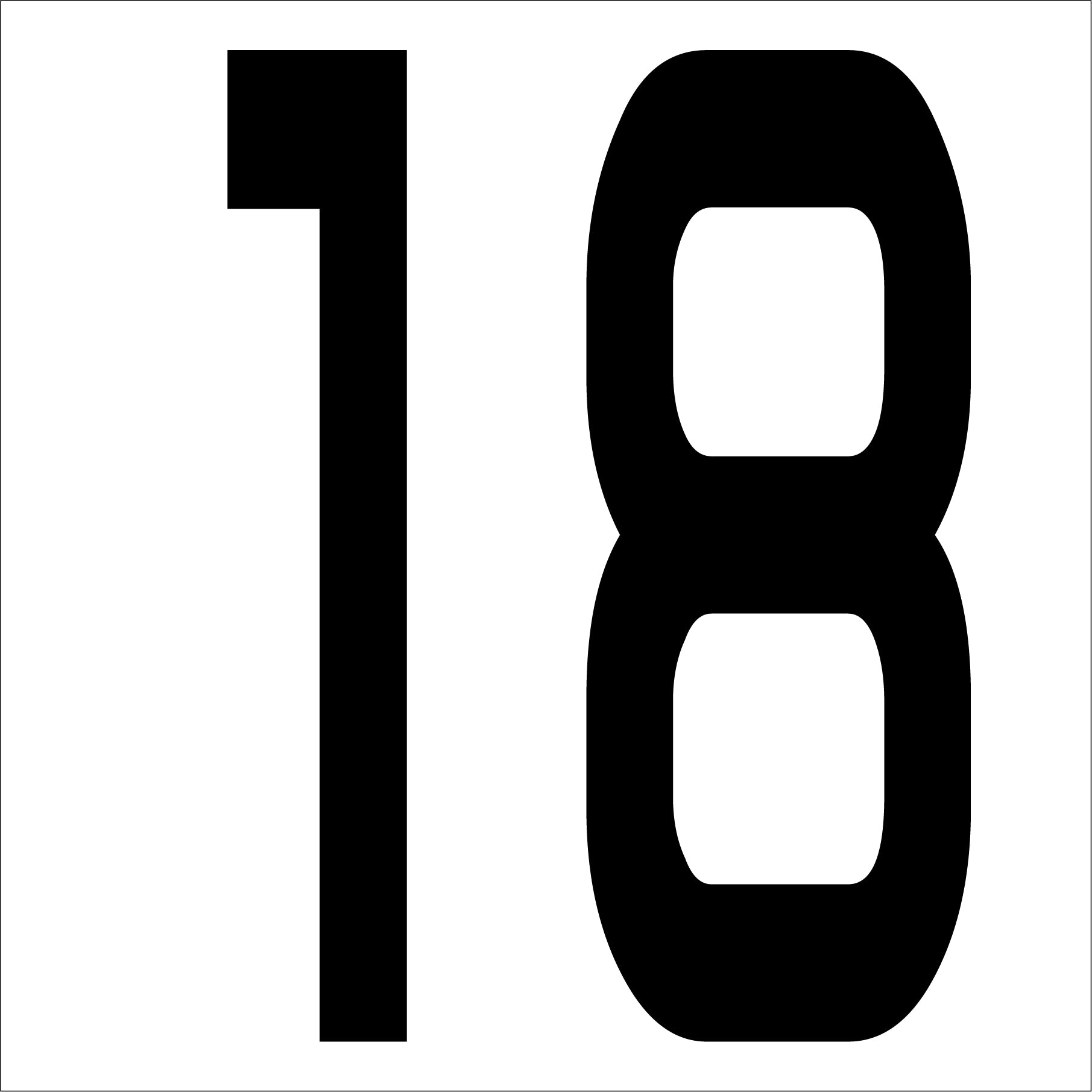 カッティングステッカー 数字18 文字高100mm 黒