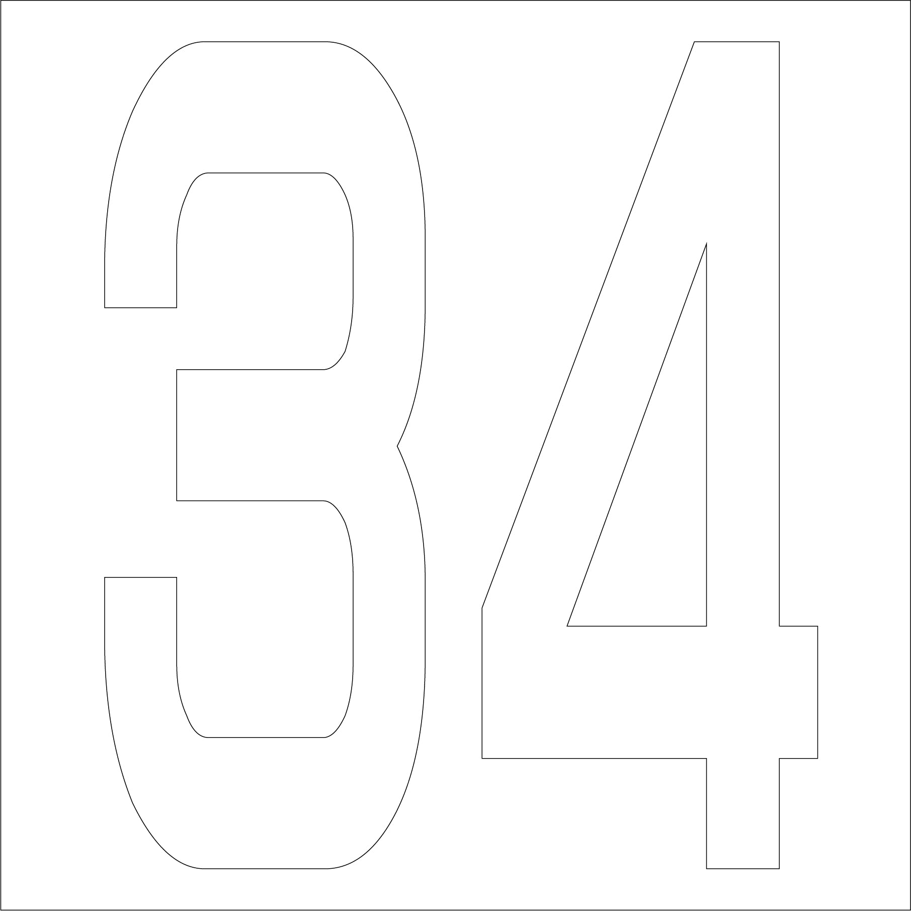 カッティングステッカー 数字34 文字高100mm 白