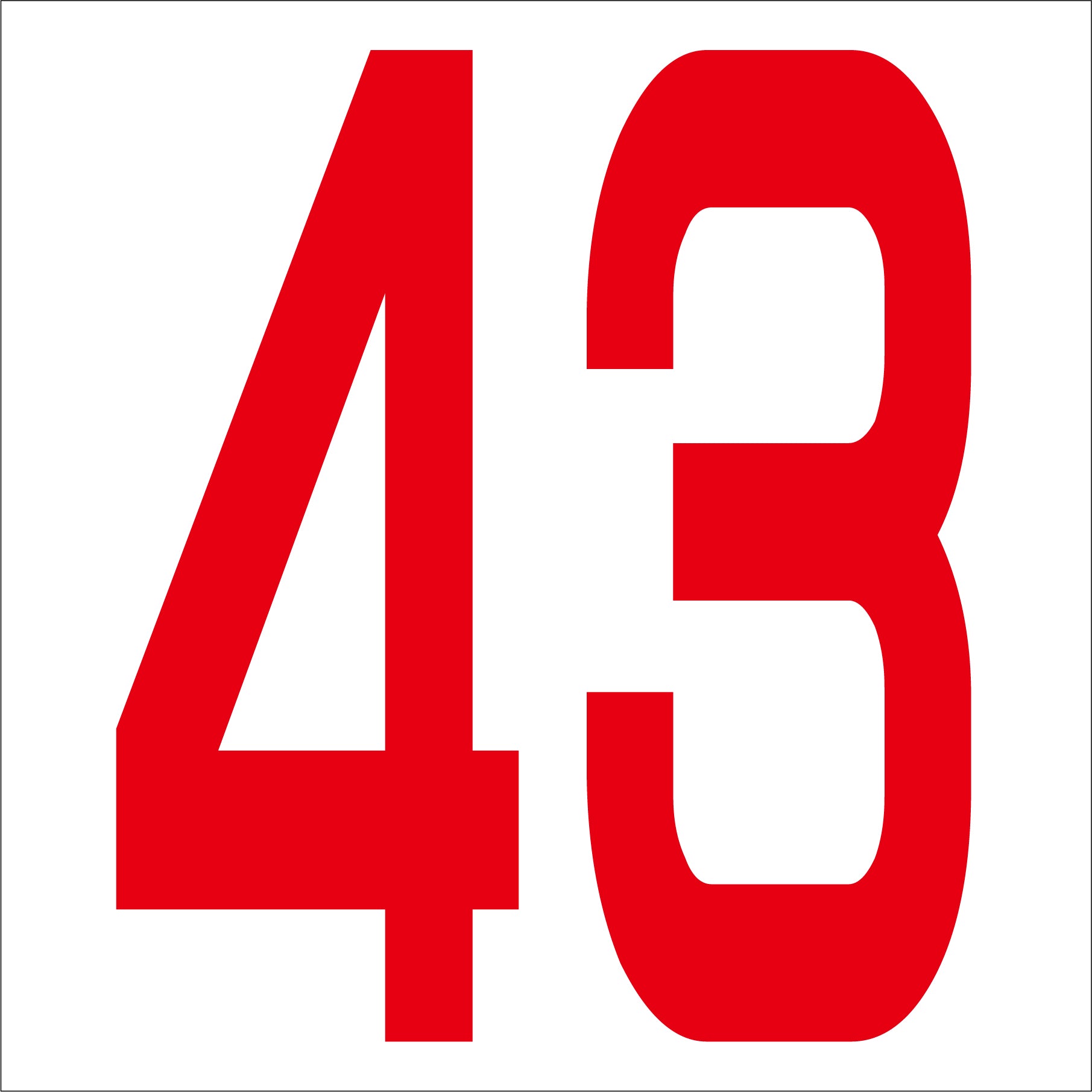 カッティングステッカー 数字43 文字高100mm 赤