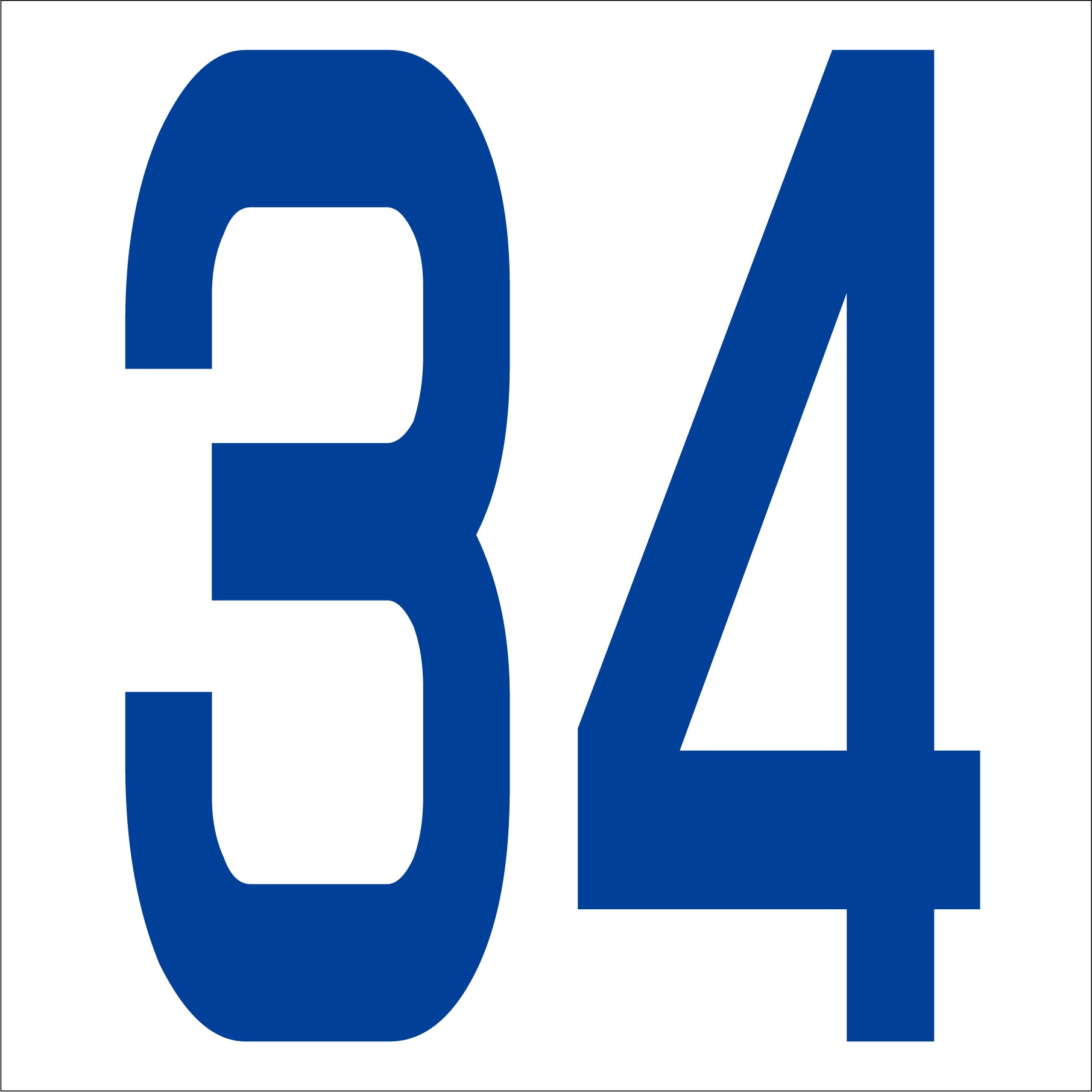 カッティングステッカー 数字34 文字高100mm 青