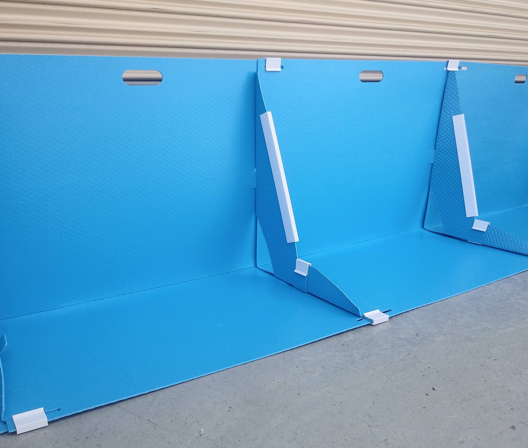 津波・高潮発生時には設置しないでください。 設置場所はコンクリートやタイル等、突起物がない平面な場所にてご使用ください。 本商品は軽度の浸水を想定した水害防止パネルの為、使用条件や災害状況により水が漏れる場合があります。 その場合はビニールシートや漏水テープでの対応をお願い致します。 備えあれ板は冠水した水の重みで止水されるようできております。 風が強い時は飛ばされる危険性がございますので重りを乗せるか建物と固定するなどの処置をしてください。 使用後は全体を水で洗い、乾燥させて収納してください。 直射日光のあたる場所や高温多湿な場所での保管は避けてください。 |