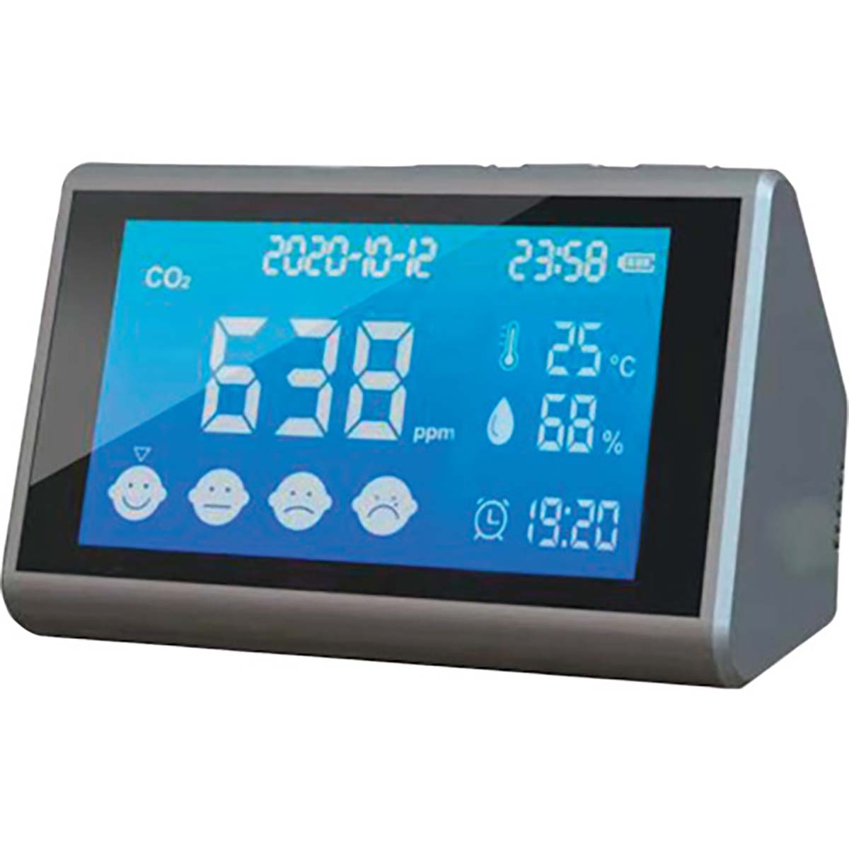 日付時刻、二酸化炭素濃度、温度表示、湿度表示、アラーム機能搭載です。