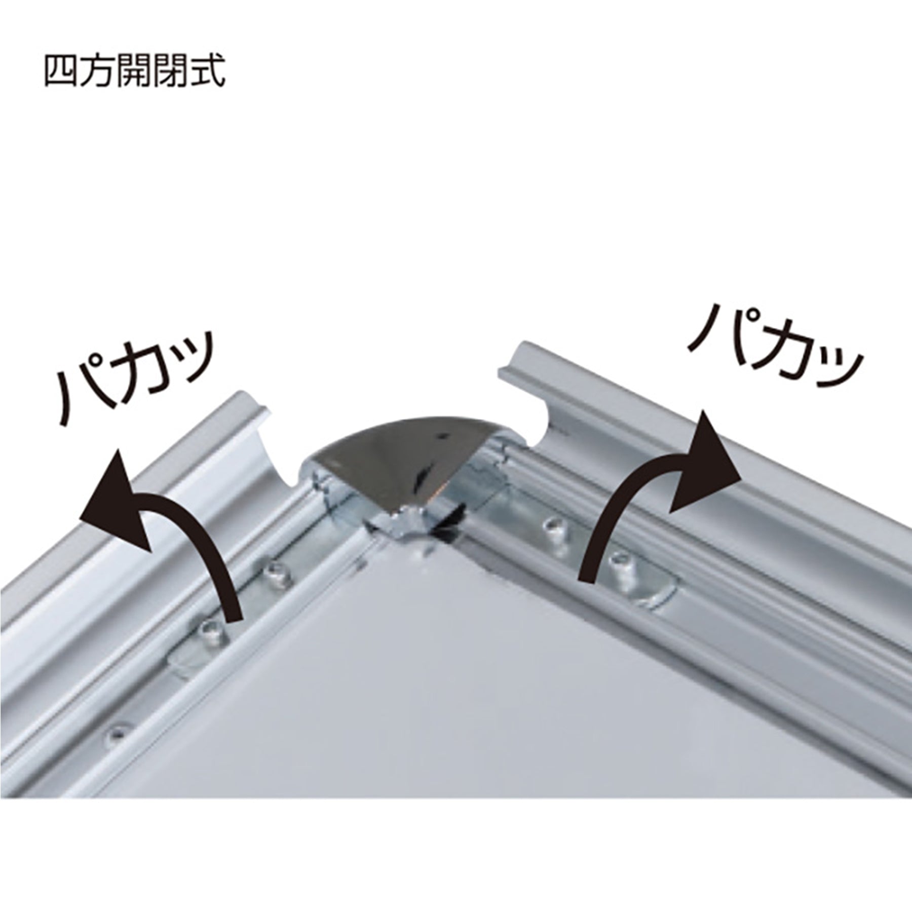 ●ポスターの交換が簡単な四辺開閉式のA型看板になります。