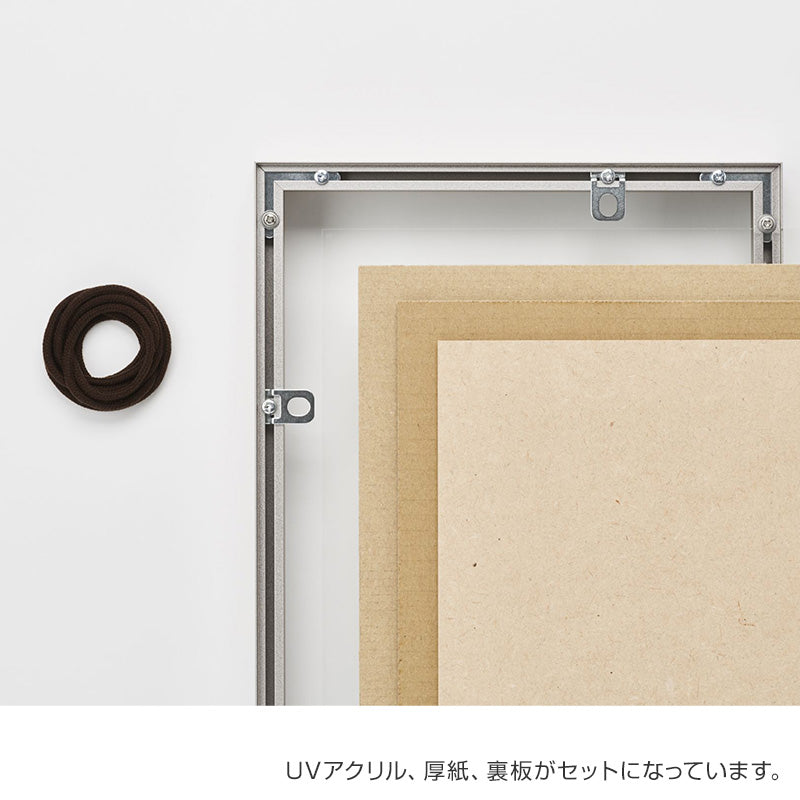 ●表面はショットブラストのようなマットコーティングを施し、アルミの素材感と高級感を併せ持つアルミ額です。