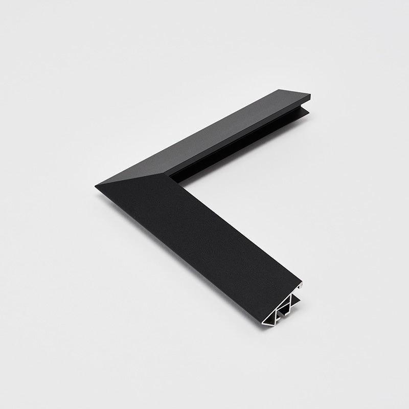 ●三角形の断面をしたこの額は、正面から見ると幅広でエレガントに、しかしそれ以外の角度からは薄く軽やかな印象を与えます。