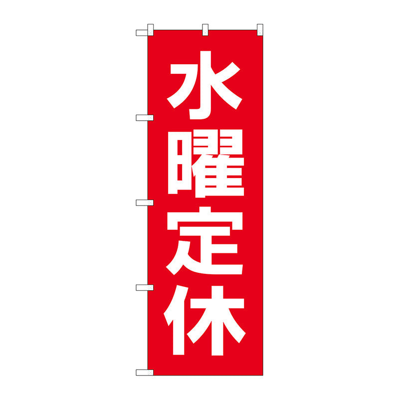 のぼり旗 水曜定休日 赤地白文 No.GNB-3132 W600×H1800