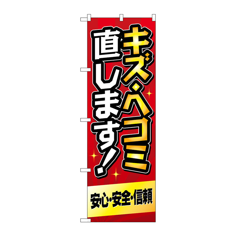 のぼり旗 キズ・ヘコミ直します 赤 No.GNB-4229 W600×H1800