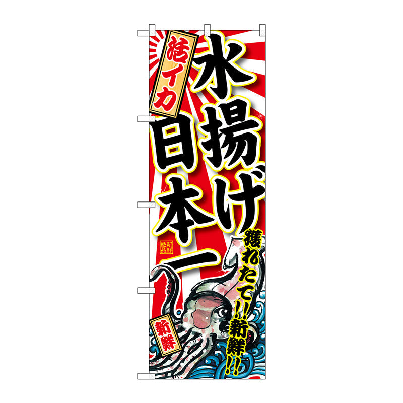 のぼり旗 活いか 水揚げ日本一 No.SNB-2326 W600×H1800