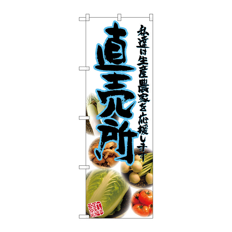 のぼり旗 直売所 青 写真 No.SNB-2376 W600×H1800