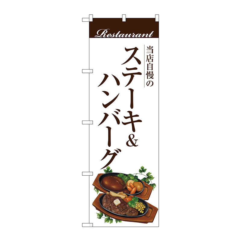 のぼり旗 ステーキ&ハンバーグ(白地) No.SNB-3108 W600×H1800