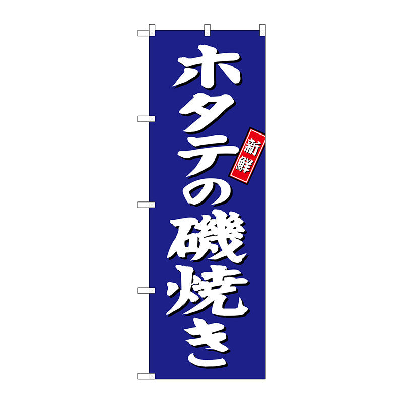 のぼり旗 ホタテの磯焼き 青地 No.SNB-3817 W600×H1800