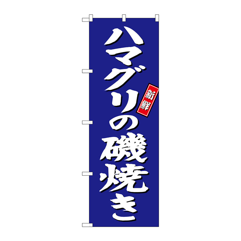 のぼり旗 ハマグリの磯焼き 青地 No.SNB-3818 W600×H1800