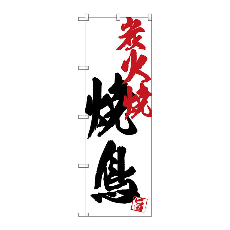 のぼり旗 焼鳥炭火焼白地 No.SNB-4656 W600×H1800