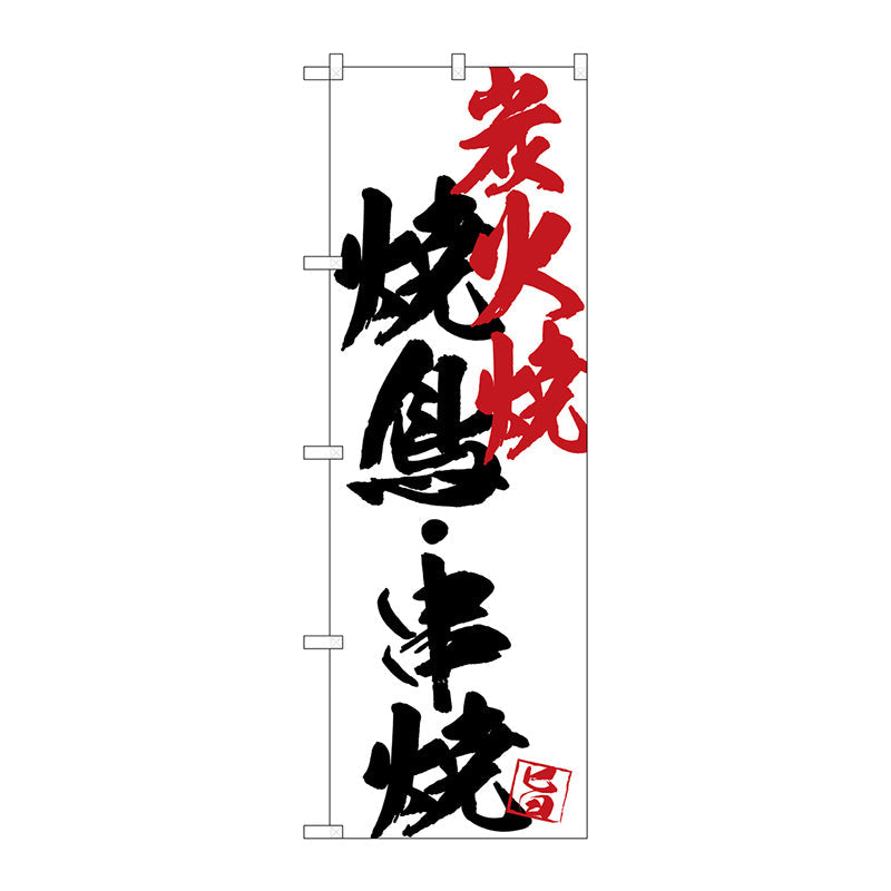 のぼり旗 焼鳥串焼炭火焼白地 No.SNB-4658 W600×H1800