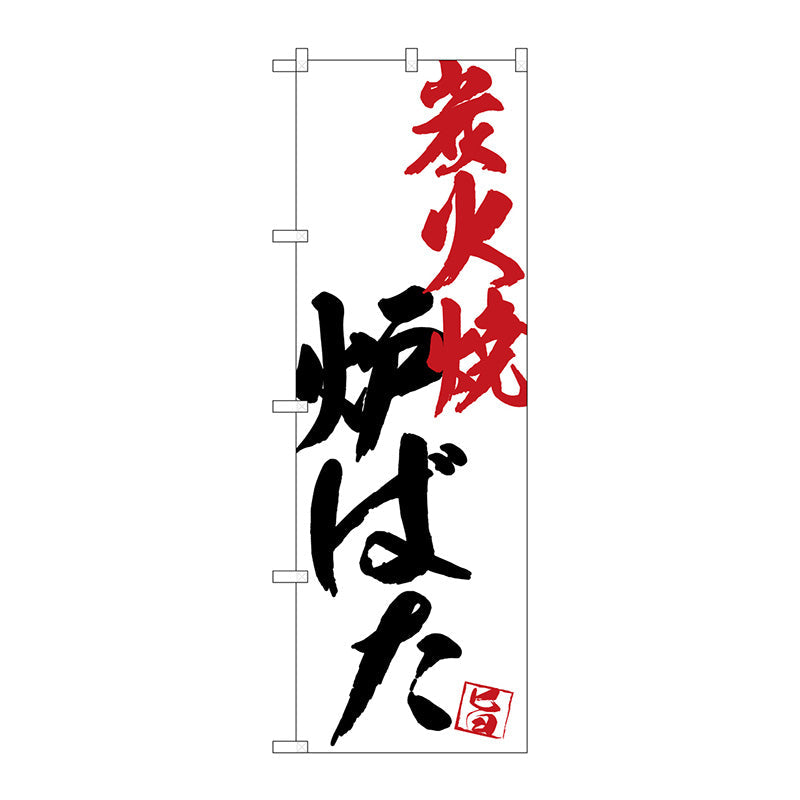 のぼり旗 炉ばた炭火焼白地 No.SNB-4670 W600×H1800