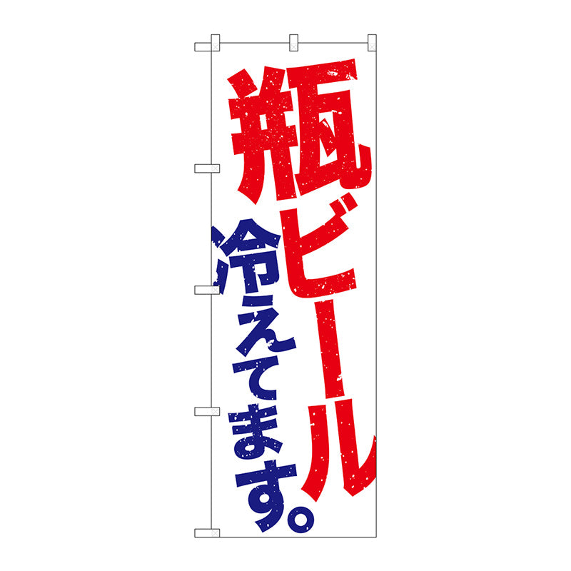 のぼり旗 瓶ビール冷え 白地赤青 No.SNB-4731 W600×H1800