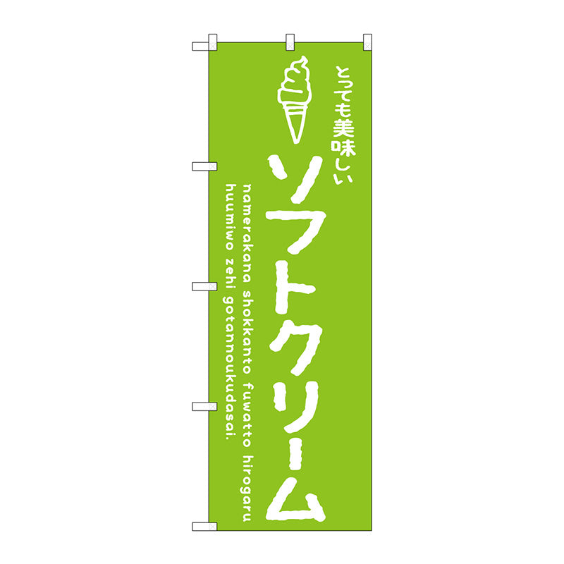 のぼり旗 ソフトクリーム緑 美味しい No.SNB-4849 W600×H1800