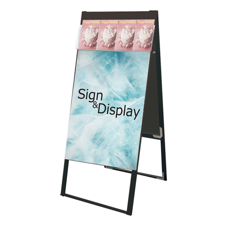 ●A6やB6、A4三つ折などのパンフレットが置けるA型看板です。