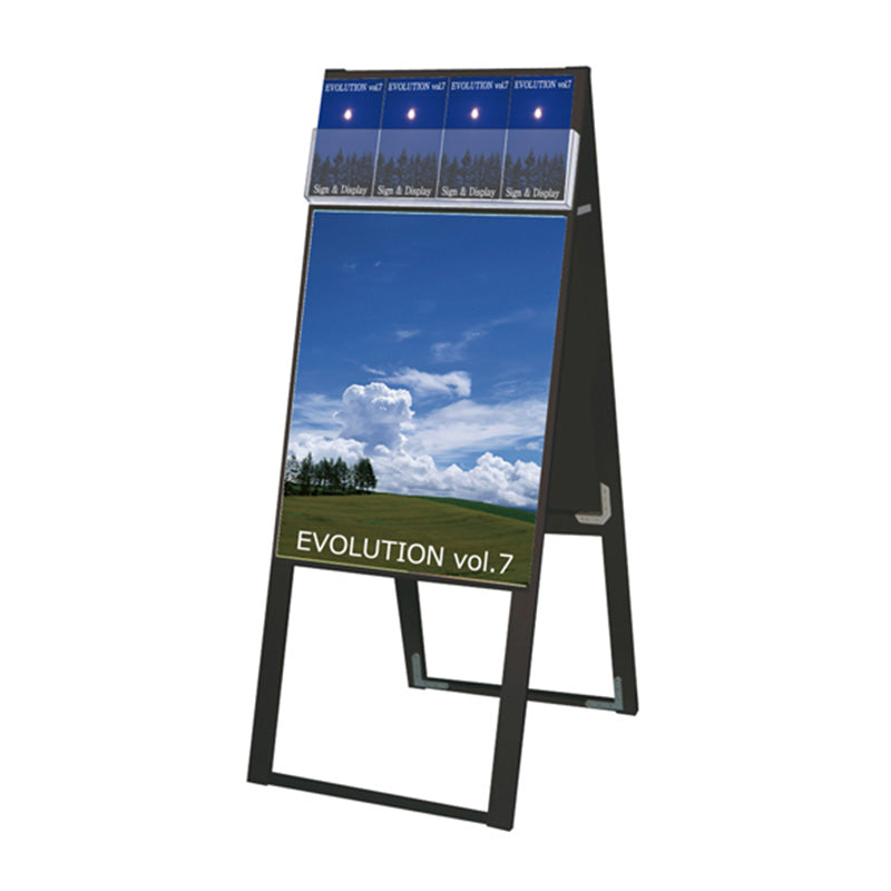 ●A6やB6、A4三つ折などのパンフレットが置けるA型看板です。