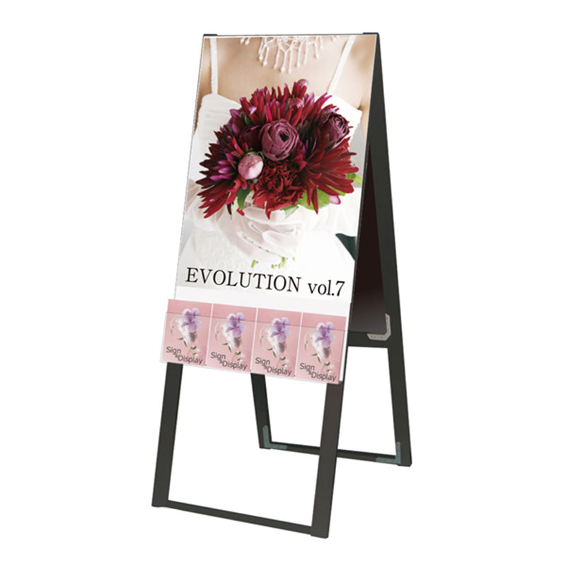 ●A6やB6、A4三つ折などのパンフレットが置けるA型看板です。