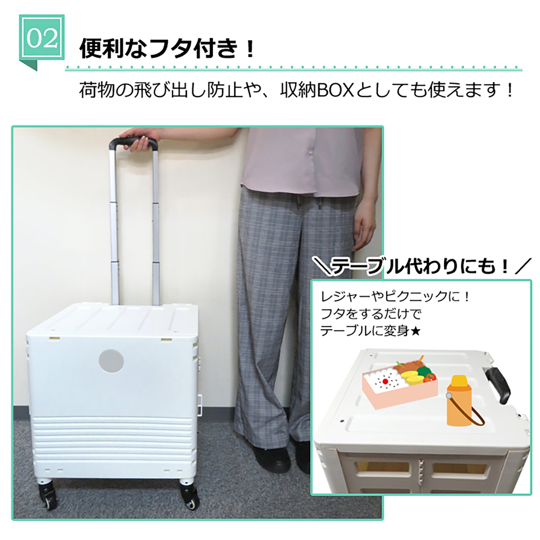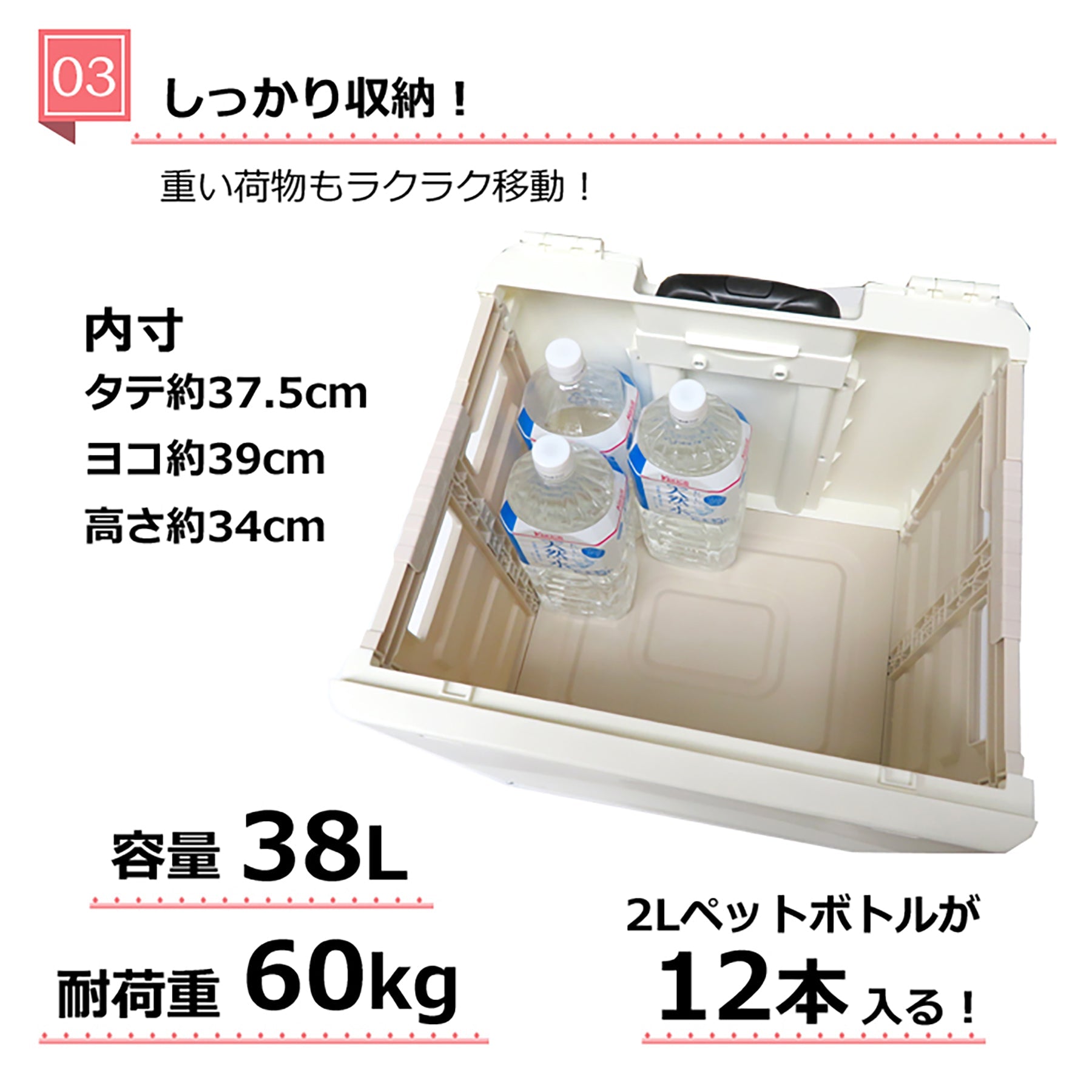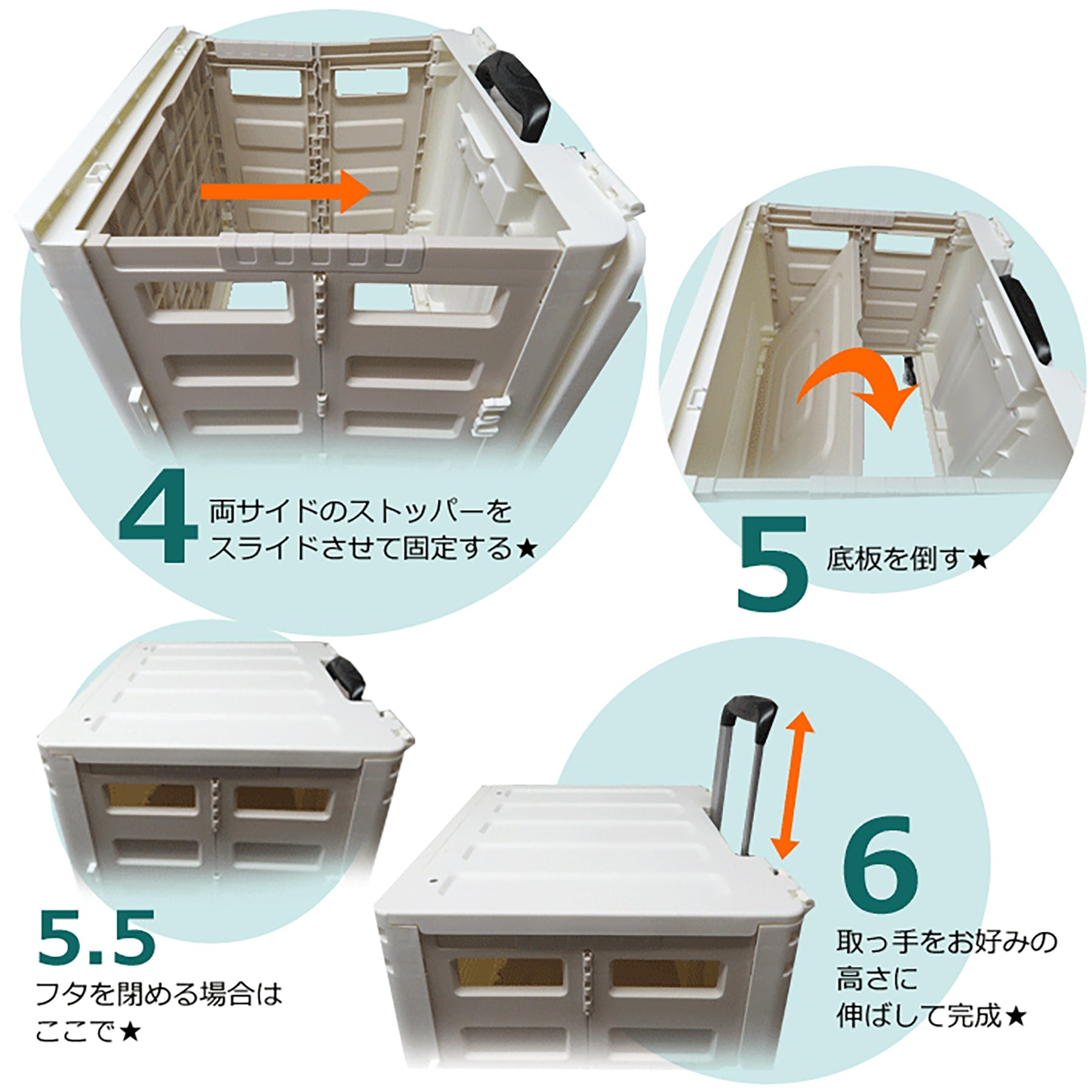 ●たっぷり収納で重い荷物もラクラク運べ、使わないときはコンパクトに折りたためるキャリーコンテナです。