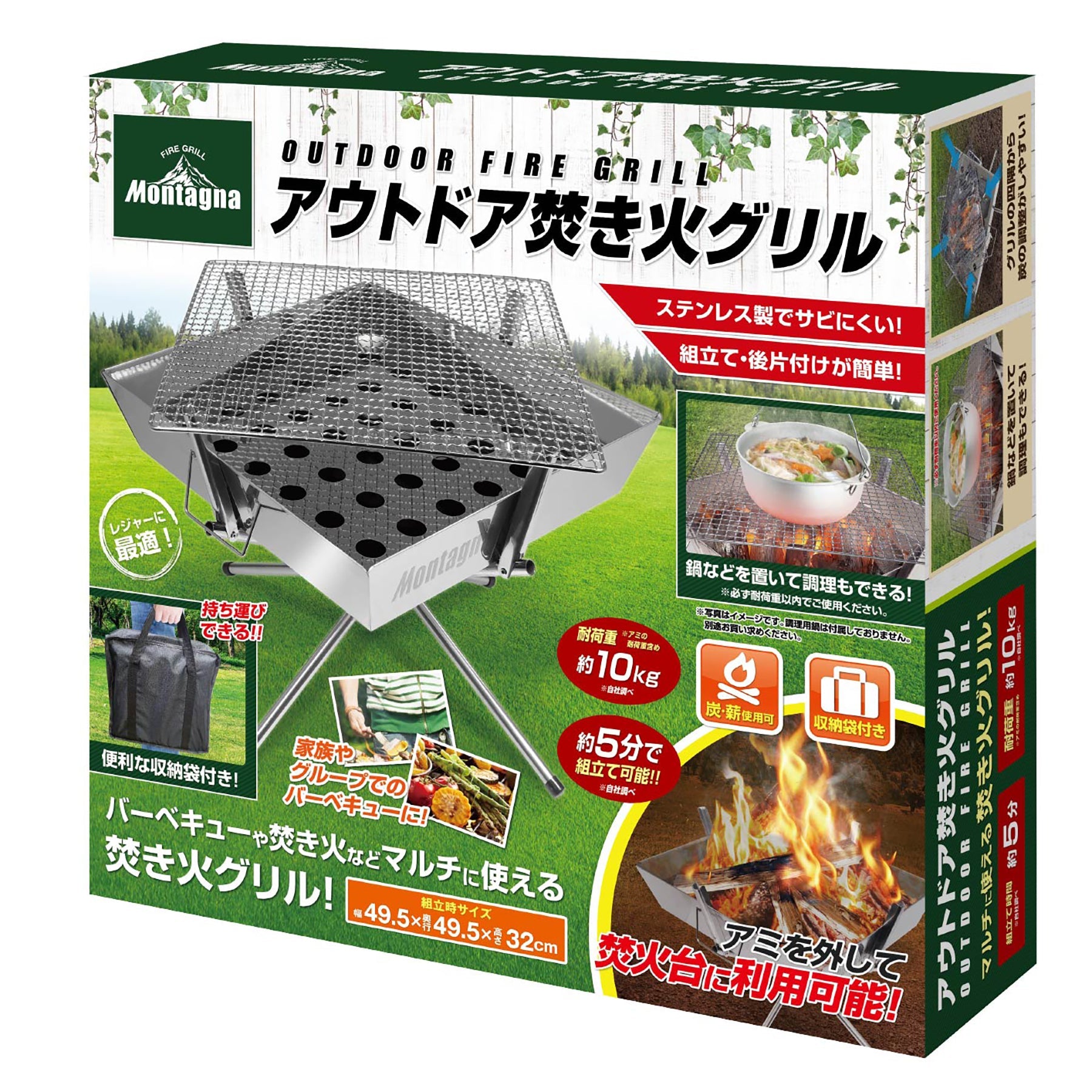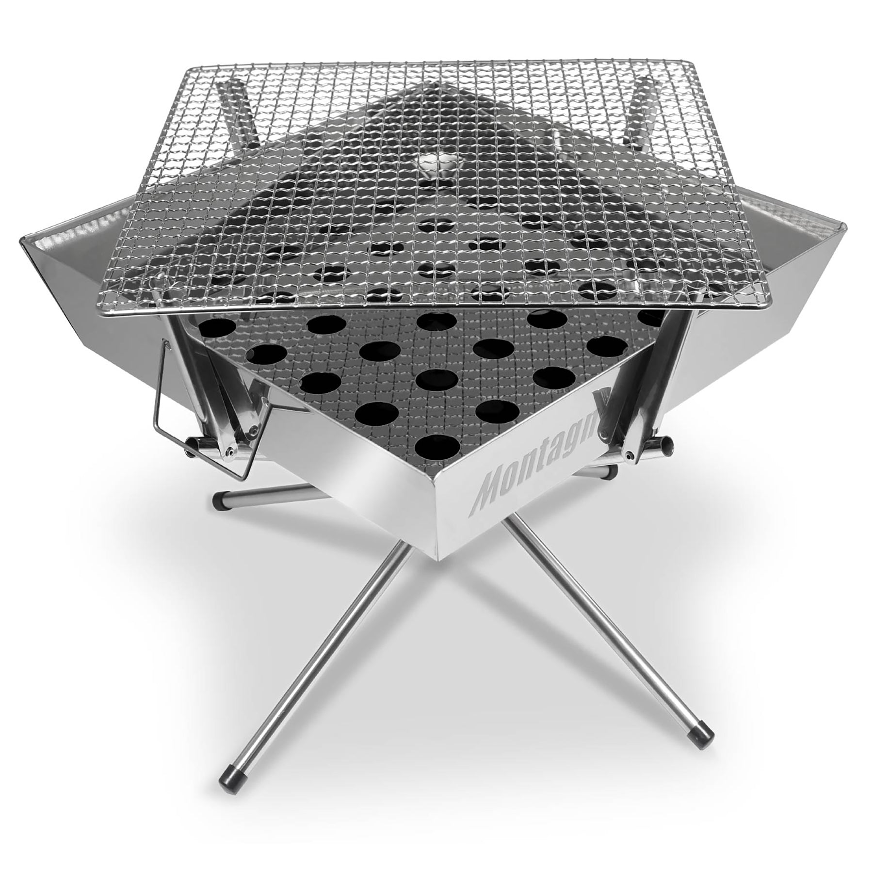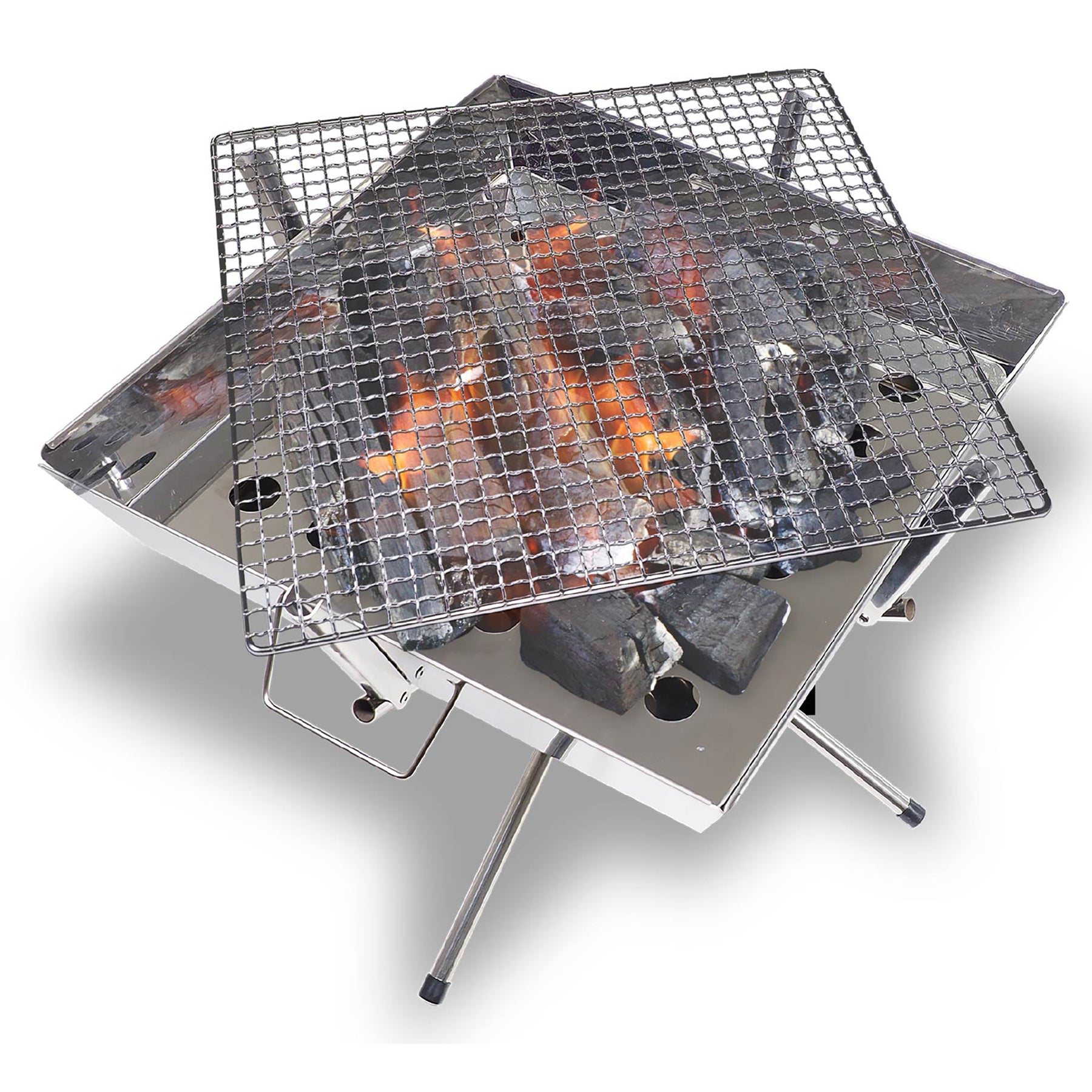●網を置いてBBQコンロにしたり、網を外して焚き火台にしたり、様々なアウトドアシーンに便利な焚き火グリルです。