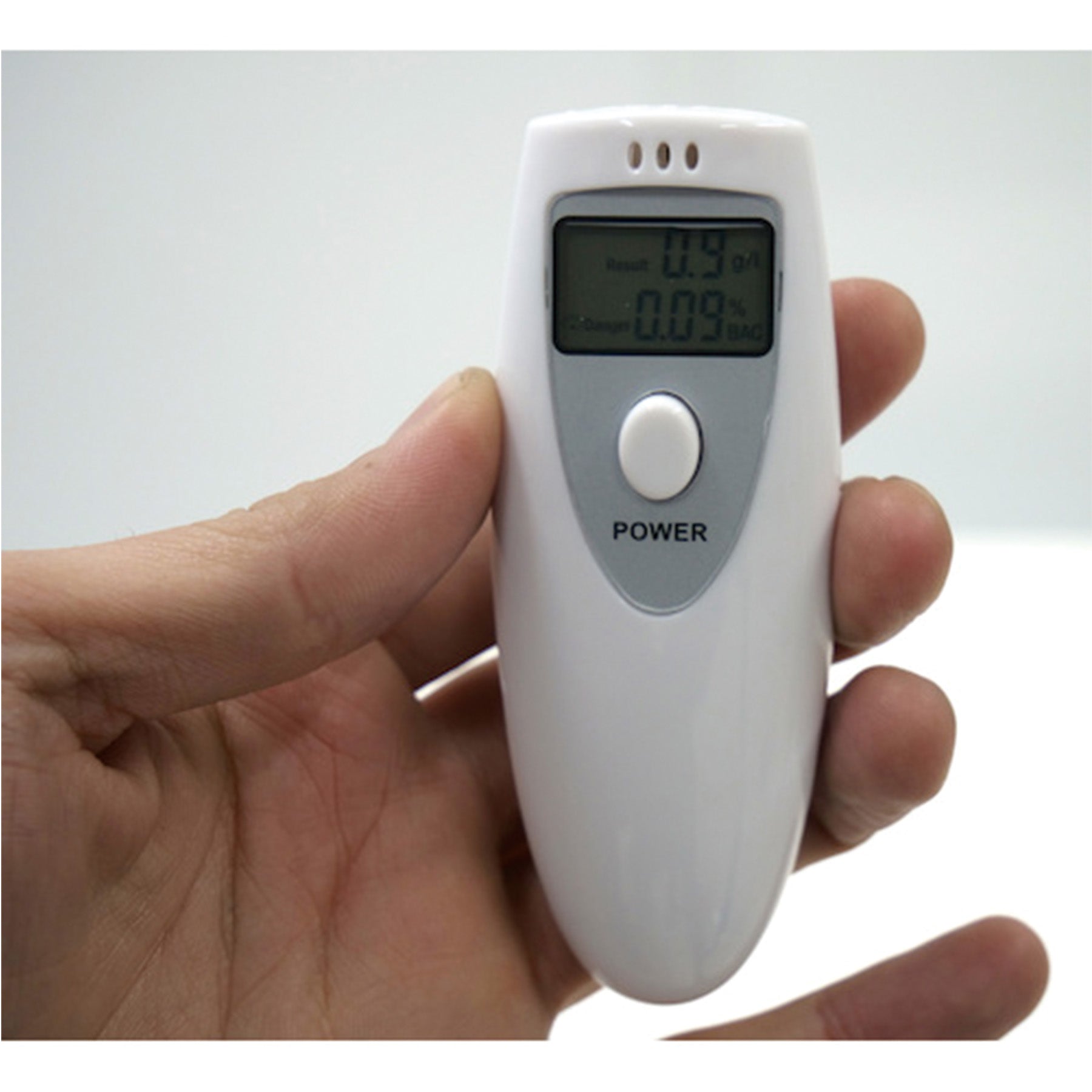 ●息をふきかけるだけで呼気中のアルコール濃度を確認できる小型のアルコールチェッカーになります。