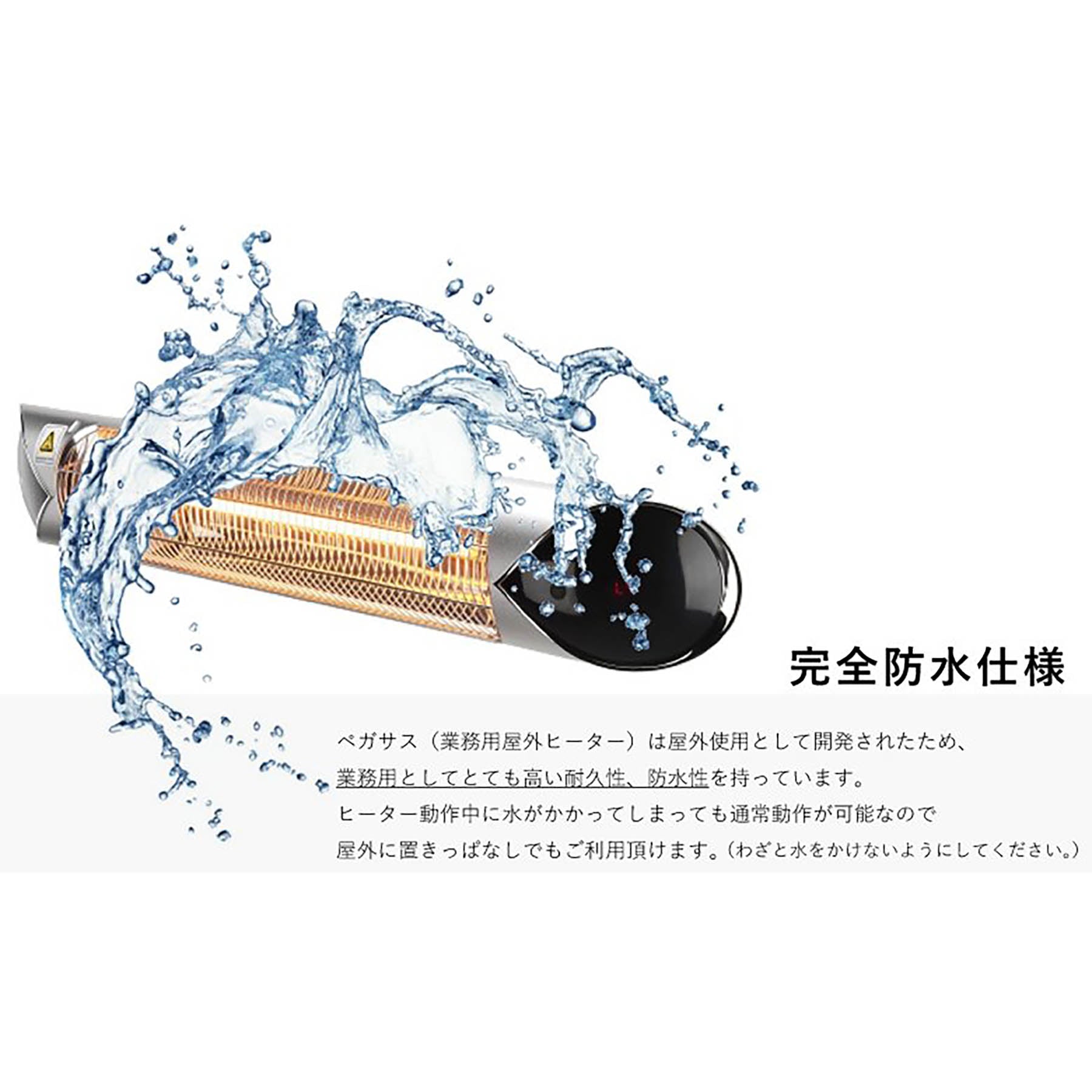 ●ヒーター動作中に水を掛けても通常動作可能であることを確認しております。